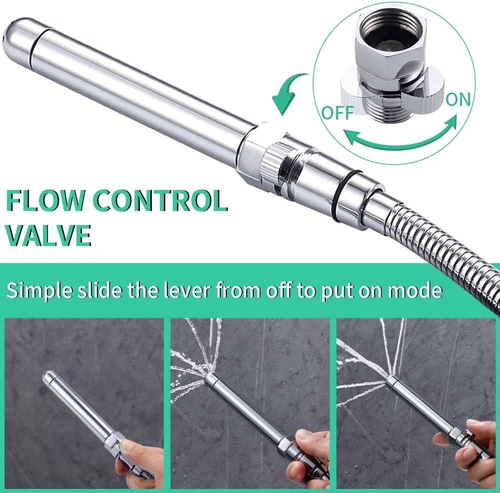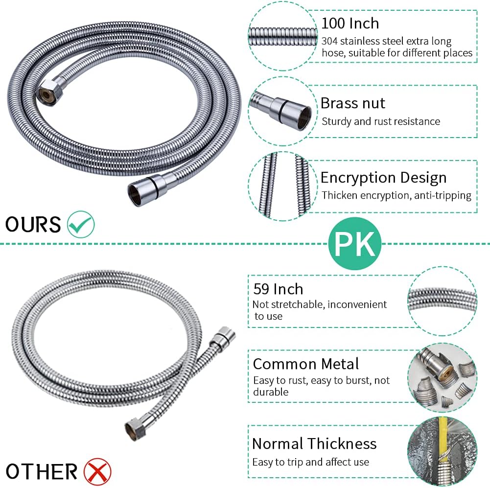 • 8 ft extra-long flexible hose: made of 304 stainless steel. No rust, Flexible and no winding. More convenient for you to use.