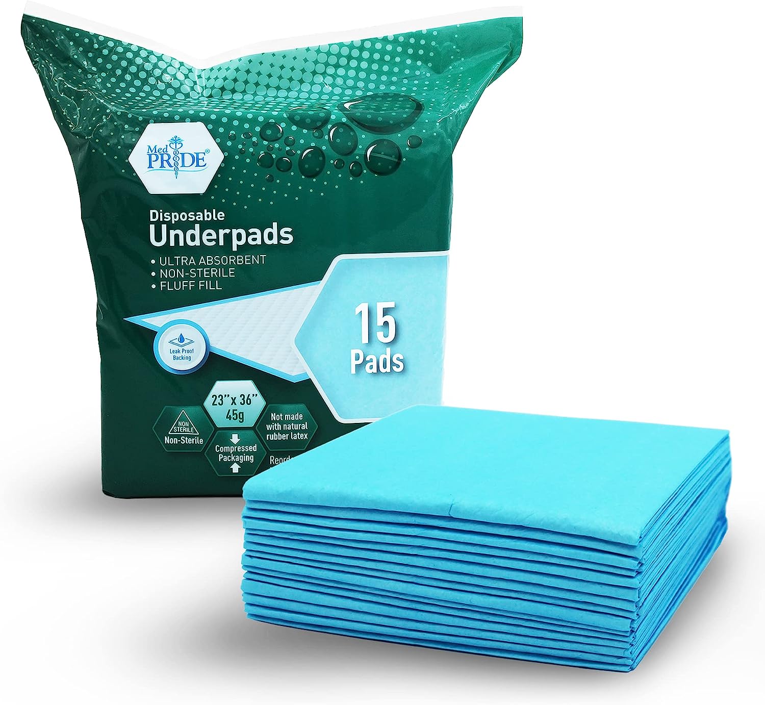 Medpride Disposable Underpads 23'' X 36'' (50-Count) Incontinence Pads, Chux, Bed Covers, Puppy Training | Thick, Super Absorbent Protection for Kids, Adults, Elderly | Liquid, Urine, Accidents