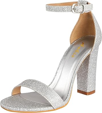Ankis Nude Black White Heels for Women Open Toe Ankle Strap High Heel Sandals Party Wedding Strappy Buckle Sandals Standard Size 4 Inches Tall High Heel Design