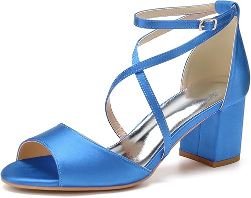 Women Peep Toe Mid Heel Satin Cross Strappy Pumps Wedding Evening Dress Dance Shoes