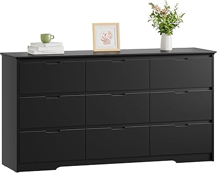 CARPETNAL 9 Drawer Black Dresser for Bedroom with Deep Drawers, Large Dressers & Chest of Drawers Handle Free, Modern Long Dressers for Closet Bedroom, Living Room (59.25" W x 15.9" D x 31.9" H)