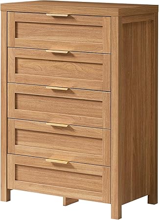 Dresser for Bedroom with 5 Drawers, Tall Dresser with Large Storage Space, Modern Wood Storage Chests of Drawers for Living Room, Hallway, Entryway