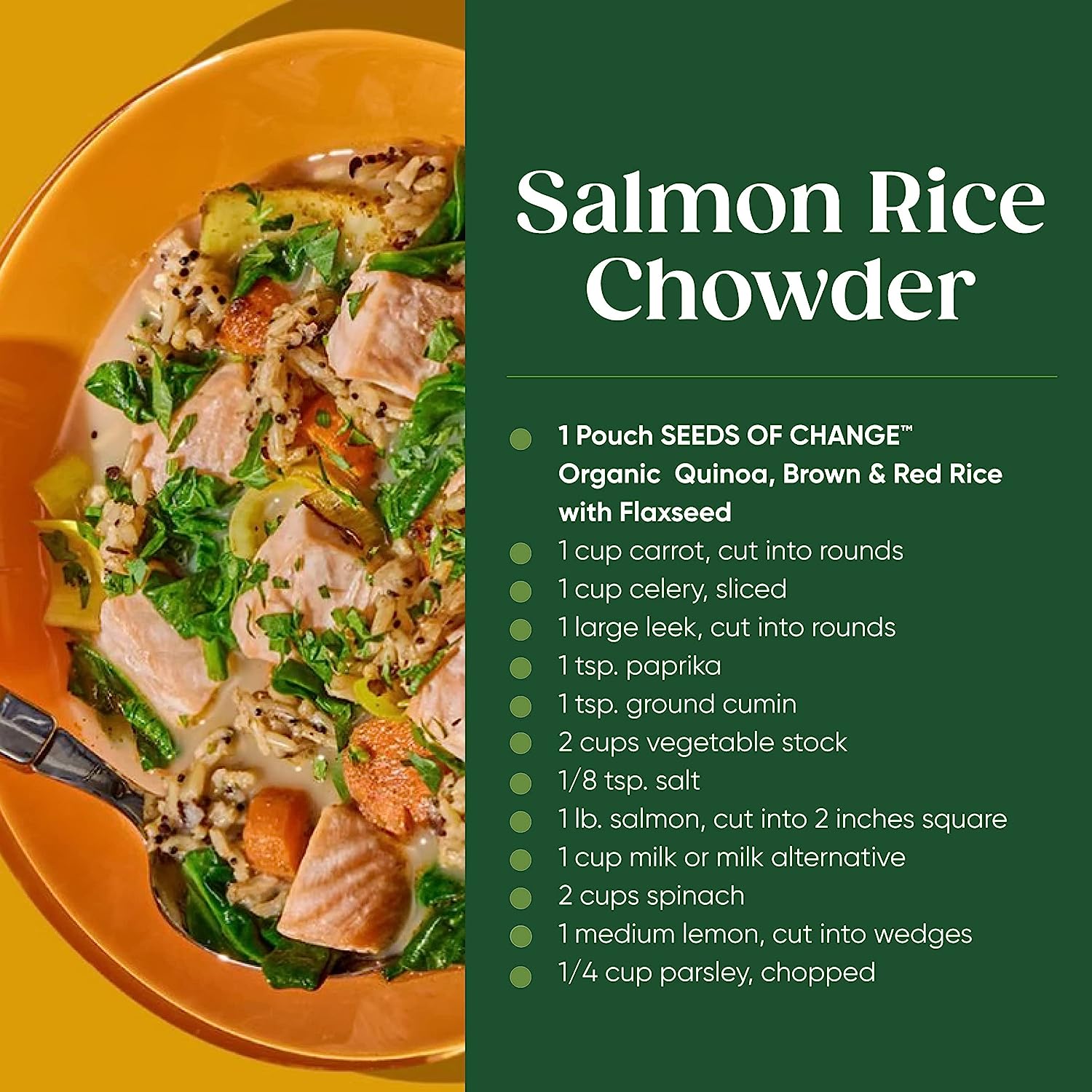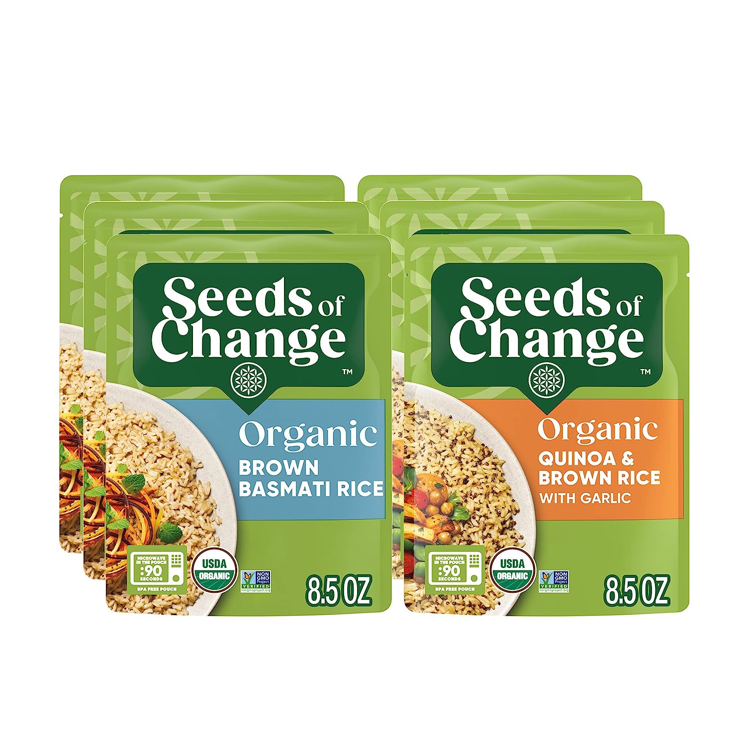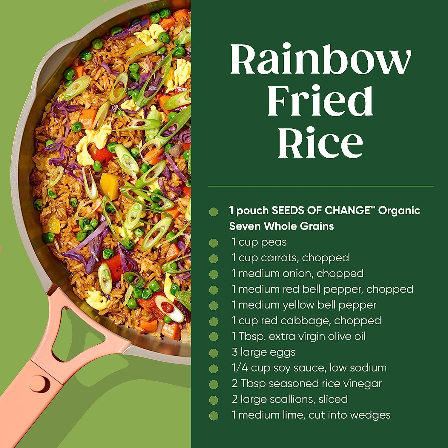 As delicious as it is easy to prepare, SEEDS OF CHANGE Certified Organic Seven Whole Grains Rice lets you explore endless possibilities with a flavorful blend for practically any occasion. The combination of long grain brown rice, bulgur, rye, barley, quinoa, millet and wild rice delivers varied, nutritious and fiber-powered organic food to your favorite rice sides and tasty rice bowls. If you're looking for a quick, vegetarian meal to dig into after a workout, simply place your whole-grain medley in a microwave on High for about 90 seconds; or stir and heat thoroughly in a skillet. Pair your main course with a heavenly seven-grain salad by mixing this SEEDS OF CHANGE whole grain blend with carefully selected parsley, chopped cucumber, green parsley and basil — top it off with crumbled feta cheese for an irresistible dish. Made with USDA-certified organic ingredients and free of artificial colors, preservatives and flavors, SEEDS OF CHANGE rice offers reliably wholesome meals for you and your loved ones. SEEDS OF CHANGE brand believes that real food, carefully prepared with wholesome ingredients, brings exceptional flavor. It is committed to donating a portion of all profits to FoodCorps to help plant nutritious seeds through school growing programs across the country.