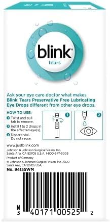 Use Blink Tears Lubricating Eye Drops for the temporary relief of burning, irritation, and discomfort due to dryness of the eye or exposure to wind or sun. Blink Tears may be used as a protectant against further irritation. The advanced formula adapts to your dry eye needs for immediate comfort and longer-lasting relief. Restores your tear film each time you blink. Blink Tears is clinically shown to improve tear film stability. Gentle OcuPure preservative disappears in your eye. Blink Tears Lubricating Eye Drops: Immediate comfort, Relief with every blink, Sterile, Restores your tear film each time you blink
