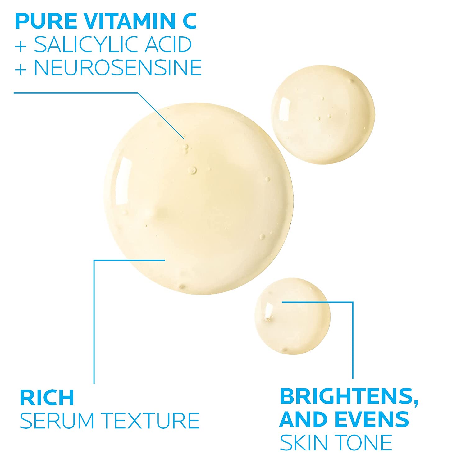 La Roche-Posay Pure Vitamin C Face Serum with Hyaluronic Acid & Salicylic Acid, Anti Aging Face Serum for Wrinkles & Uneven Skin Texture to Visibly Brighten & Smooth. Suitable for Sensitive Skin