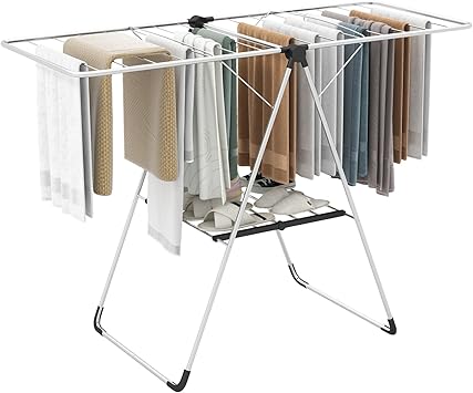 Giantex Clothes Drying Rack, 2-Layer Aluminum Foldable Laundry Drying Rack with 2-Level Adjustable Height, Anti-slip Foot Pad, Space Saving Freestanding Collapsible Laundry Drying Rack