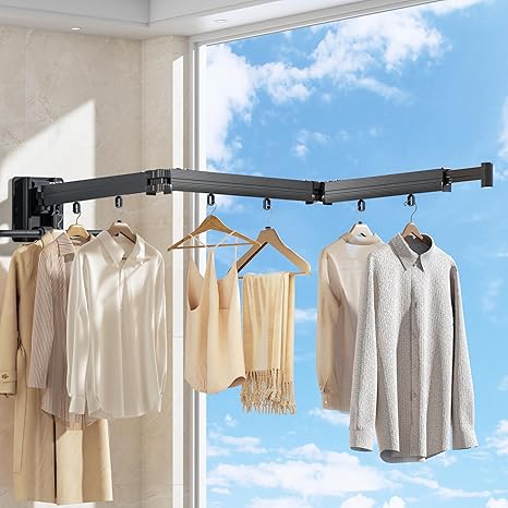 submatches Clothes Drying Rack Foldable for Hanging Clothes Laundry Room Organization Retractable Clothes Line Outdoors Ironing Board Holder Wall Mount(Screw Grey)