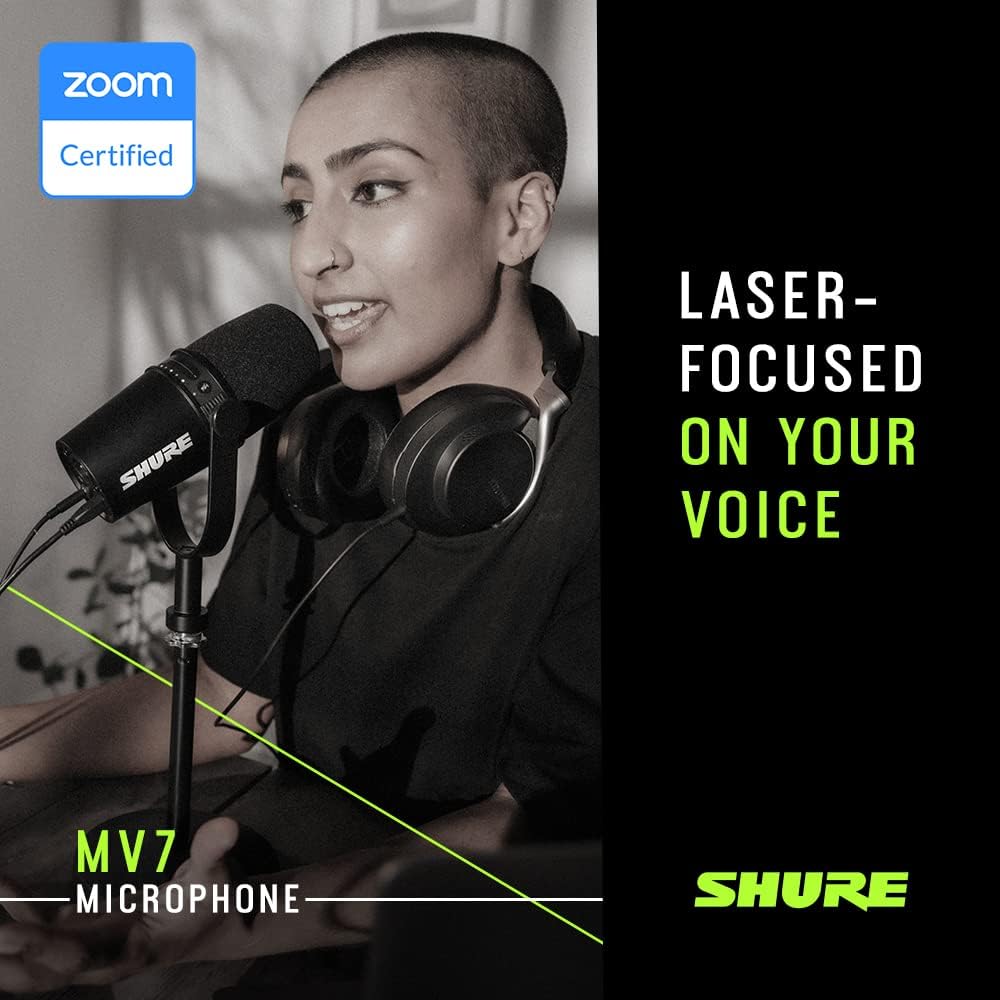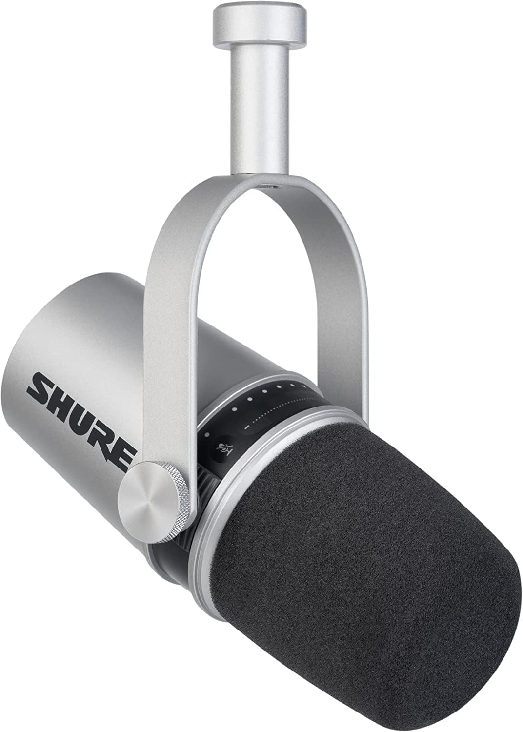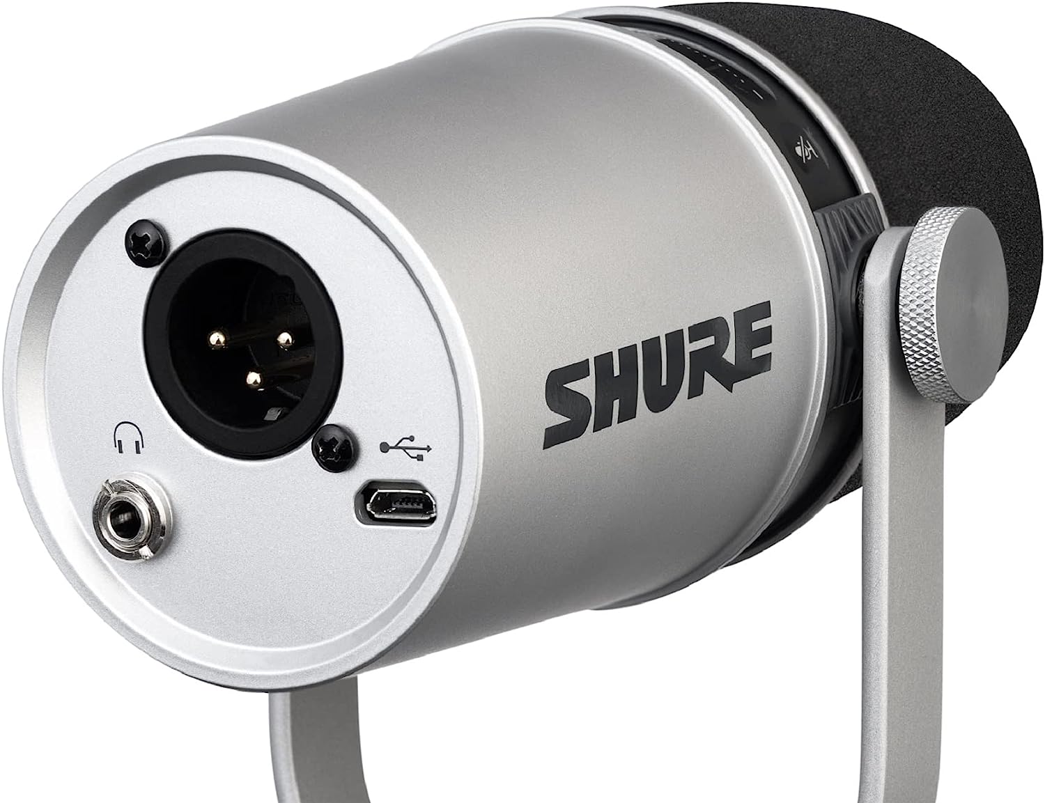 Shure MV7 USB Microphone for Podcasting, Recording, Live Streaming & Gaming, Built-in Headphone Output, All Metal USB/XLR Dynamic Mic, Voice-Isolating Technology, TeamSpeak & Zoom Certified – Silver