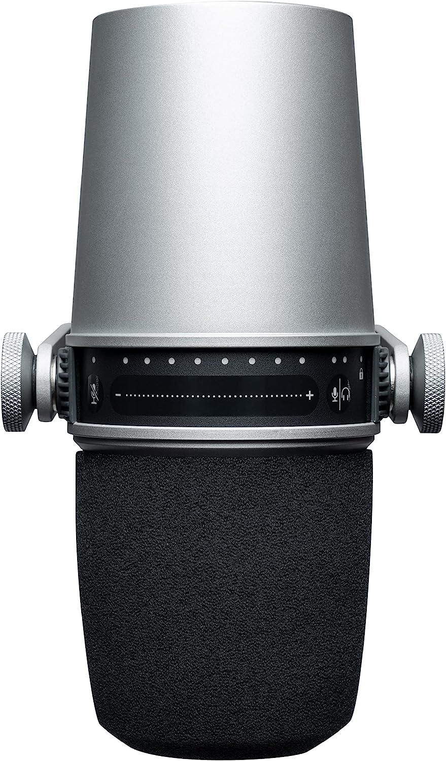 The Shure MV7 is a professional-quality USB/XLR dynamic microphone inspired by the legendary SM7B, ideal for close mic applications that require vocal intelligibility with a balanced tone. A touch panel interface on the microphone itself provides control over microphone gain, headphone level, monitor mix, and muting, and the ShurePlus MOTIV Desktop Application allows users to save their own presets or enable auto-gain, compression, and EQ presets for easy real-time audio processing. The attractive and durable all metal design features an adjustable yoke that can be mounted onto a variety of microphone stands for flexible placement options.