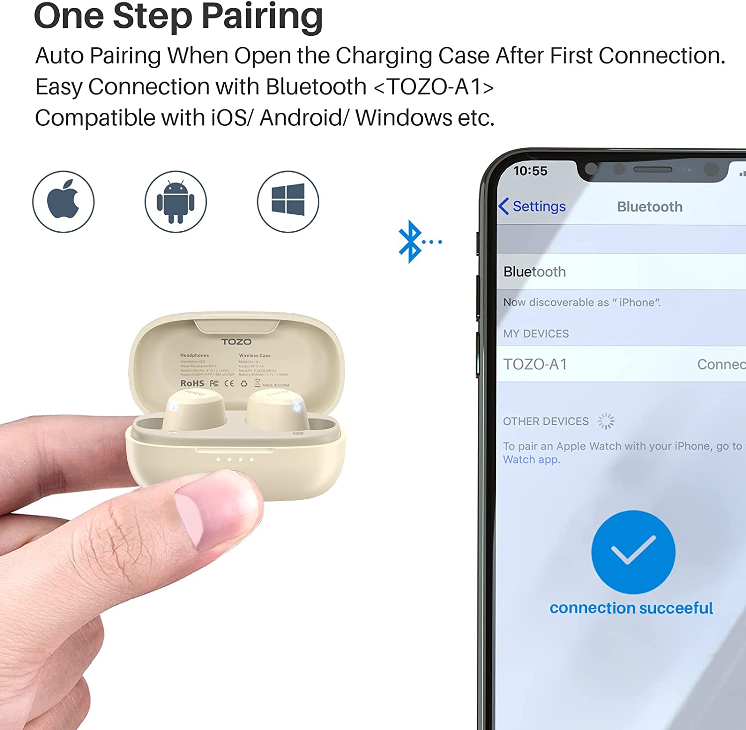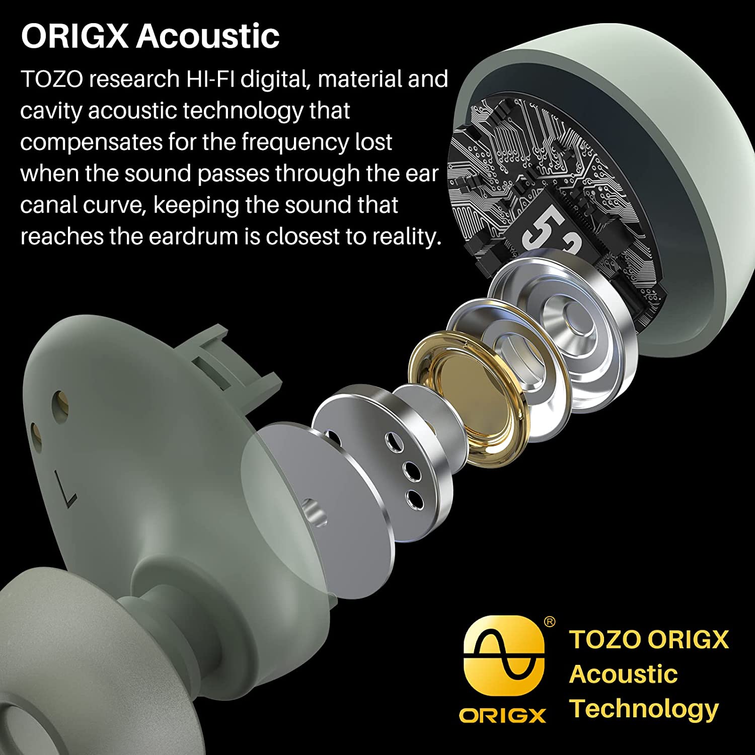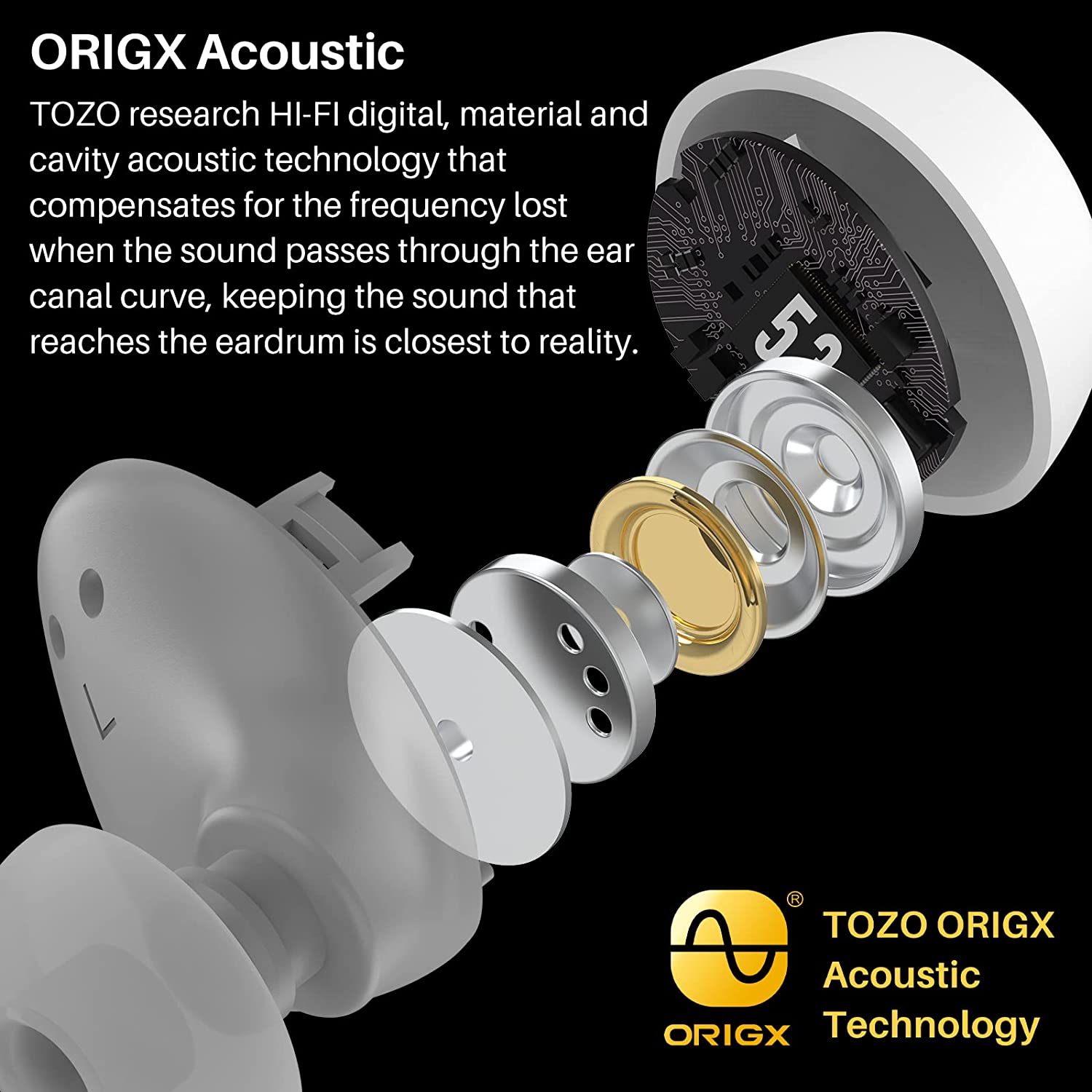 • [Stereo Sound Quality] TOZO A1 earbuds’6mm diameter speaker presents a powerful and wide sound range, which makes the treble full of dynamics, and the bass powerful.Adopt advanced Bluetooth chip makes the sound played by the earphones much more beautiful and pleasant, suitable for sports or home work