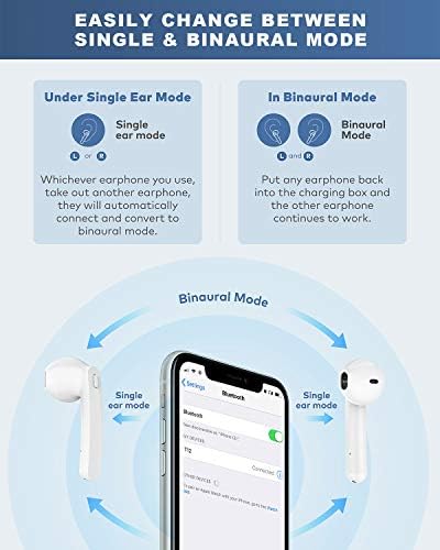 • Switch Single or Binaural Mode Freely--These wireless earbuds are not limited to a main earbud. You can switch to using either headset and enjoy the same operations and functions. It makes your ears more comfortable or adjusts to environments where background sounds are required. You can also share music/movies with your friends or families and enjoy the same wonderful sound