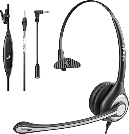 Wantek Cell Phone Headset with Microphone Noise Cancelling for PC, 3.5mm Jack, Volume Control, Wired Computer Headset for Zoom Skype, for Office, Business, Call Center, Clear Chat