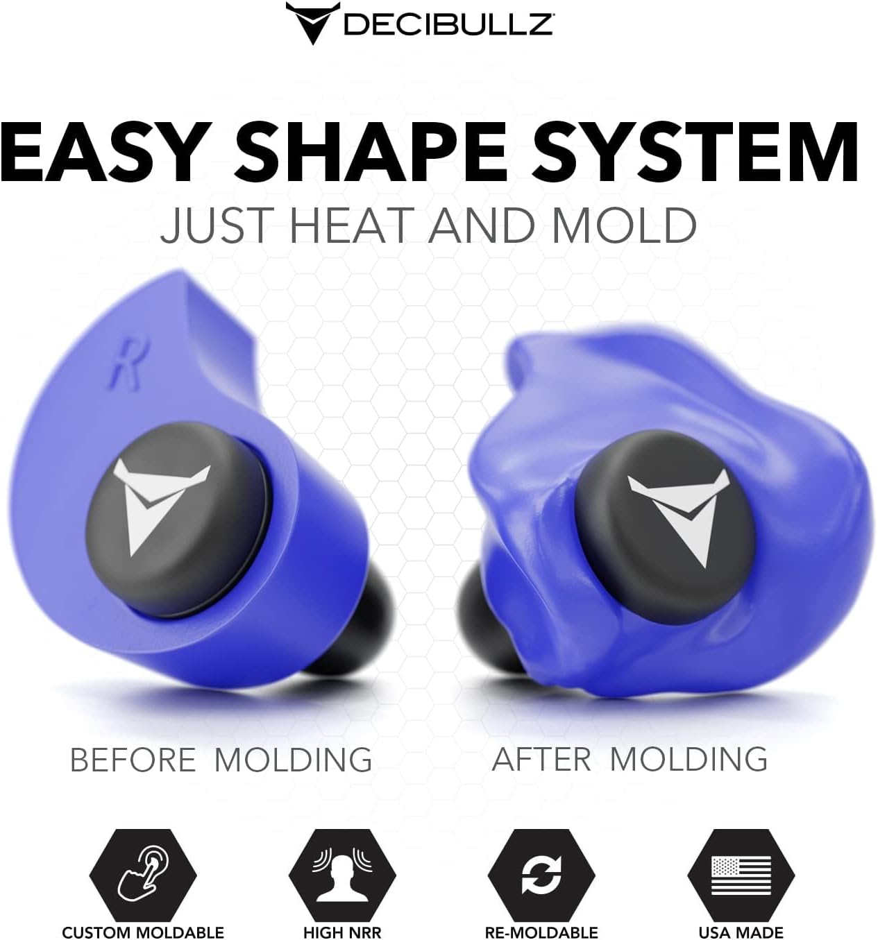 • EASY SHAPE SYSTEM: Simply heat the Decibullz thermoplastic molds in boiling water, let them cool for a bit, and shape them to your ears. That's it, and If you don't get the perfect fit the first time Decibullz are the only custom earplugs that are re-moldable.