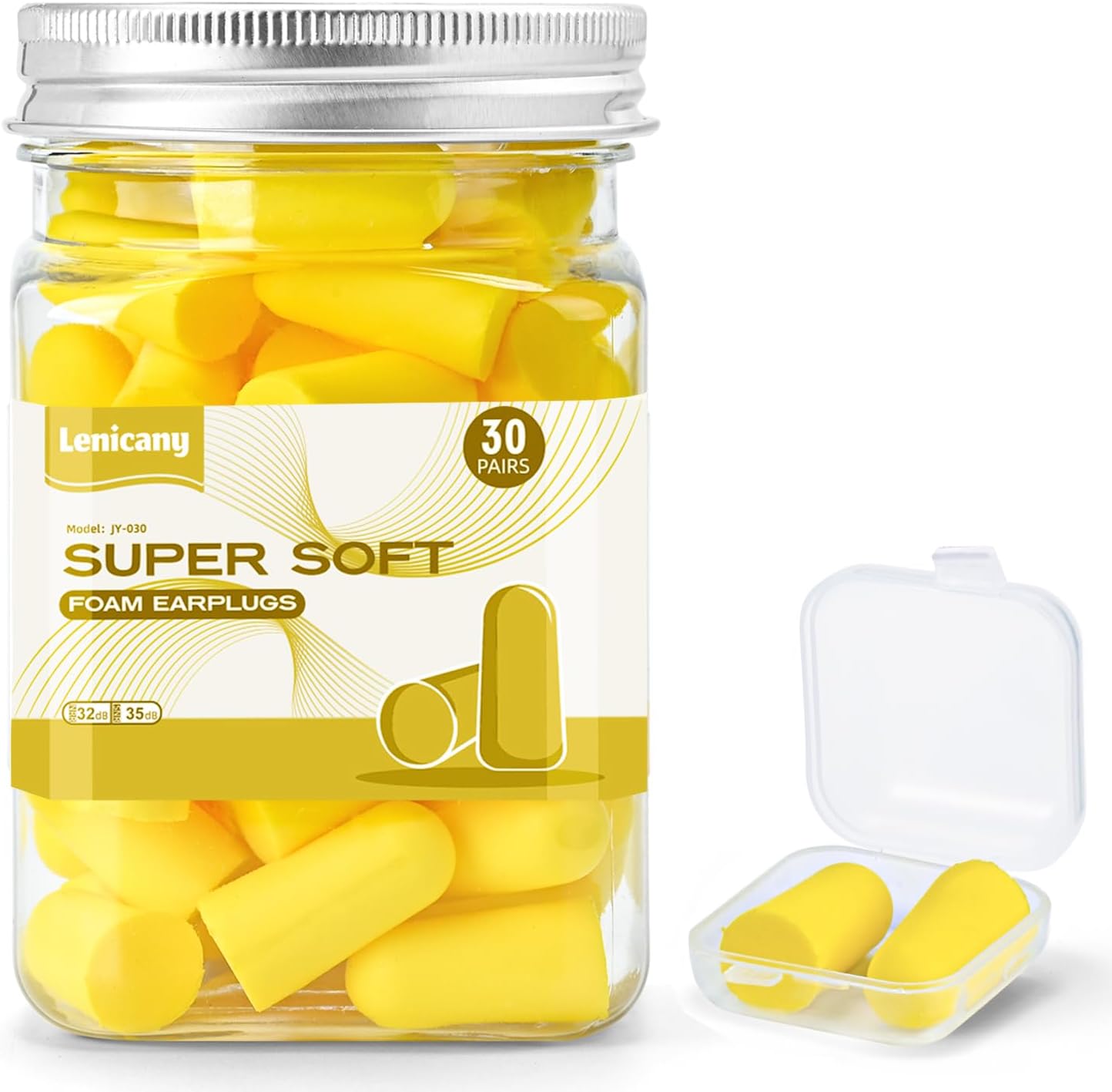 Lenicany 30Pair Ultra Soft Foam Ear Plugs for Sleeping, 35dB Sound Blocking Noise Cancelling Ear Plugs for Snoring/Working/Studying/Side Sleeper, Slow Rebound (Blue)