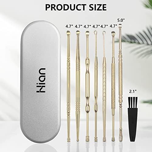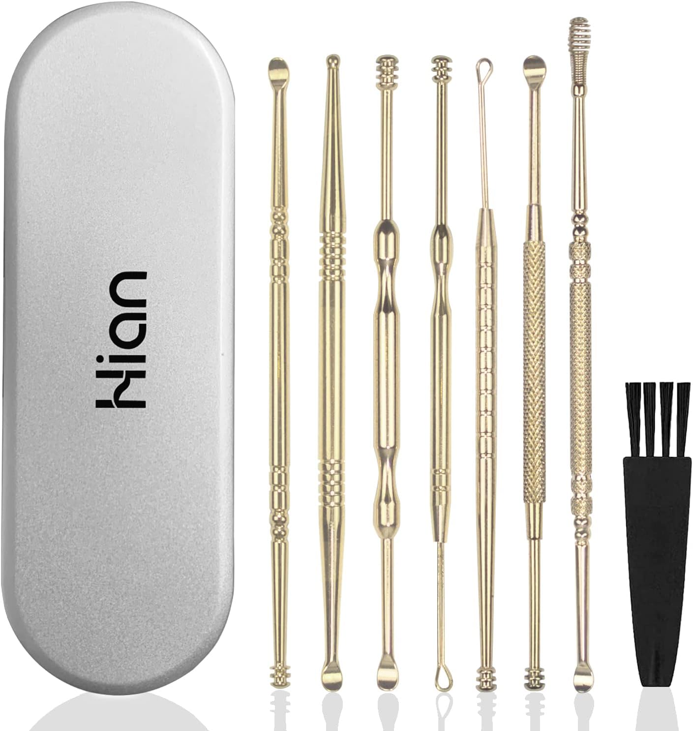 6 Pcs Ear Wax Removal Kit,Professional Double-Headed Ear Pick Earwax Removal Tools,316L Stainless Steel Ear Cleaner Curette with Cleaning Brush and Storage Box,Suit for Kid Adult(Gold)
