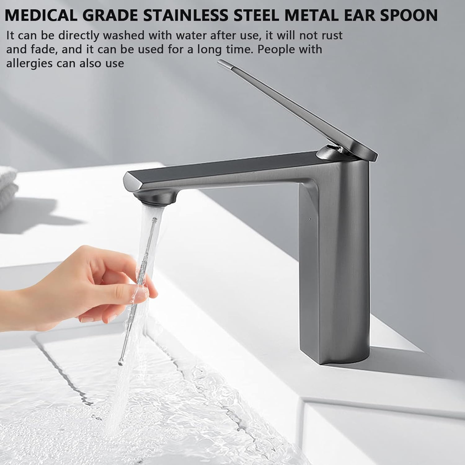 • 【Ergonomic Design & Reusable & Washable】Ergonomic handle and groove on the each earpick is designed for anti-slip grip,making the whole process of the ear cleaning safe.And make it easy and efficiently to clean your ears.Each kind of ears cleaner have different size to fit any different ear canal such small ear(kids and women),big ear(men).Come with a cleaning brush to clean the debris after use.and rinse them off thoroughly with soap and water fter use and wipe dry to reuse