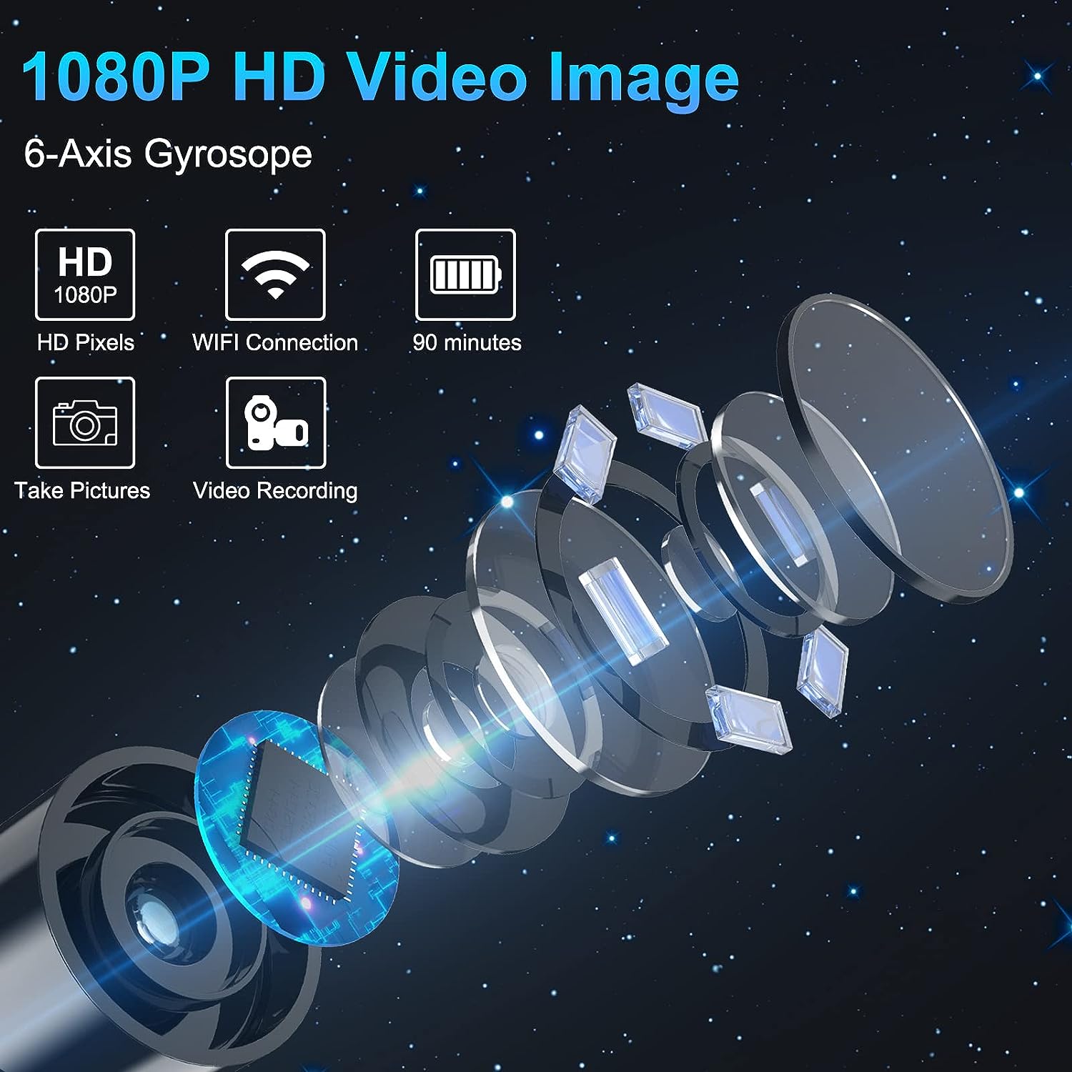 • 1080P HD Ear Cameras: The overall design reduces the weight of the earwax removal kit. When using it for the first time, please get used to the touch of the ear pick in the ear canal and move it gently and slowly. Built-in 350mAh rechargeable battery, the continuous use time can be up to 90 minutes when fully charged, and the standby time can be up to 30 days.