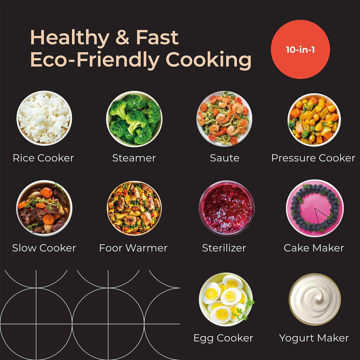 • 8 Safety Features – Unlike many multi cookers, our engineers designed built-in safety technology. Cook Your Meals Fast – Cooking fast with less water saves natural resources and energy, plus your time! Also has a food warmer function.