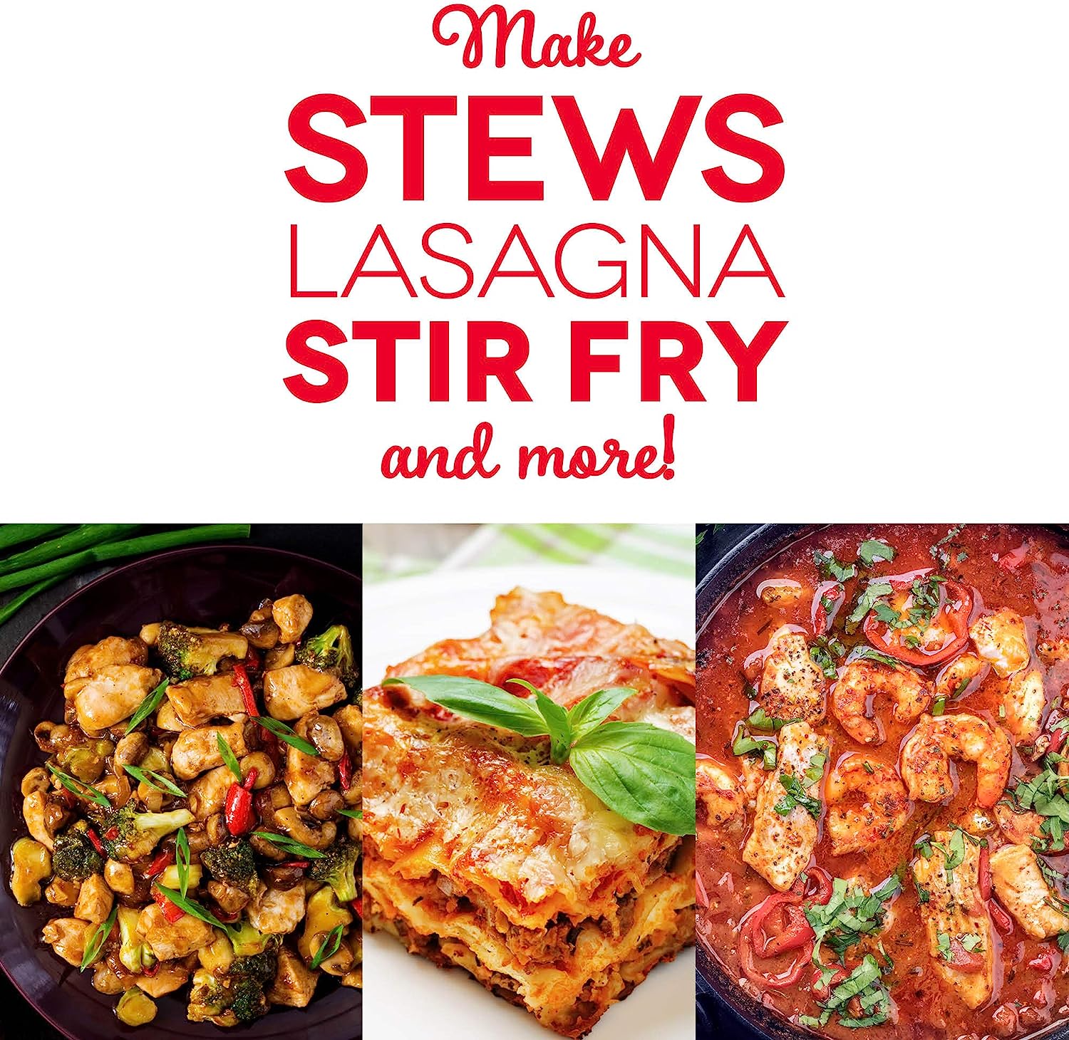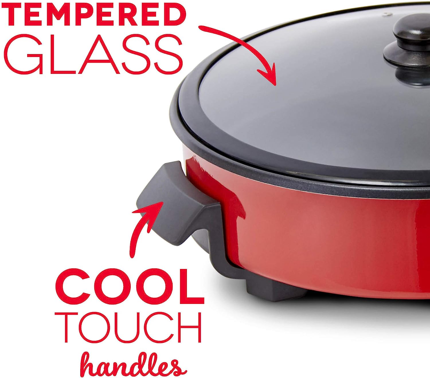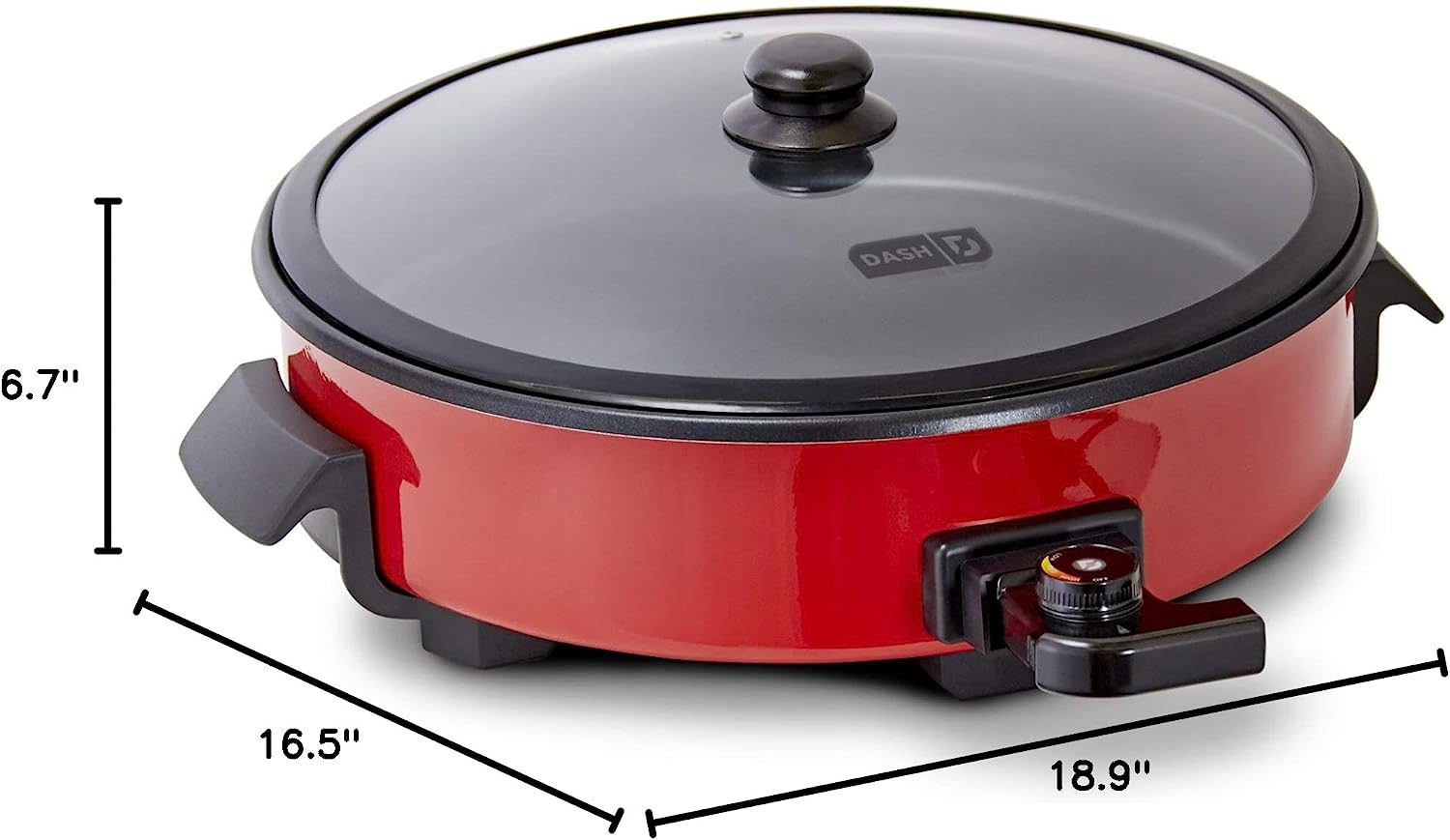 The DASH Family Skillet, 14” is perfect for countertop cooking and entertaining. The ample 14” pan, with a 2.5” depth accommodates stews, sauces, stir frys and more for a family of up to 6 people. Braise, simmer, scramble, sear and saute, all in your DASHFamily Skillet. The PFOA-free nonstick cooking surface makes it so easy to clean and the removable electric probe and cord make it easy to store. An easy-to-use temperature control adjusts the skillet to 450℉ quickly and cool-touch handles allow for safe transport from your kitchen to the dinner table.