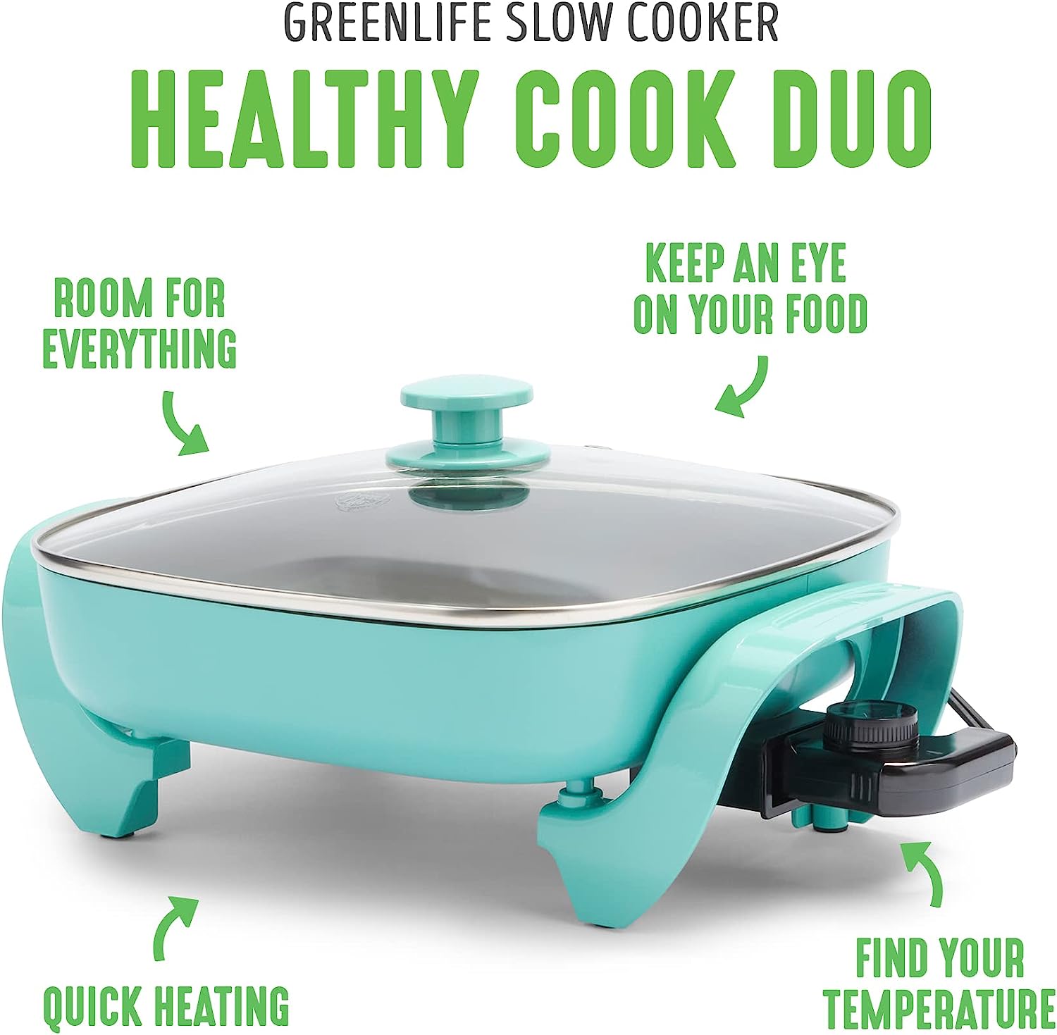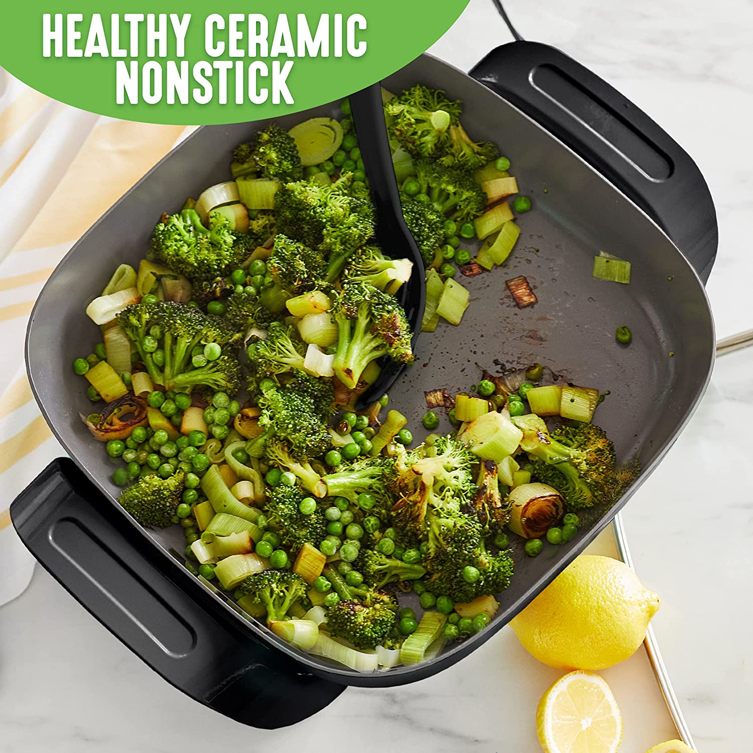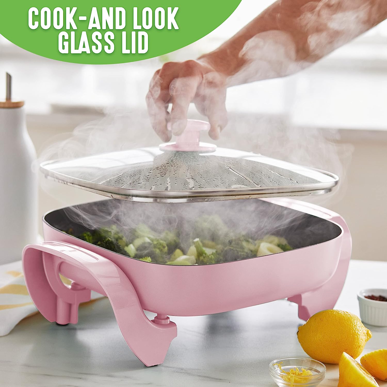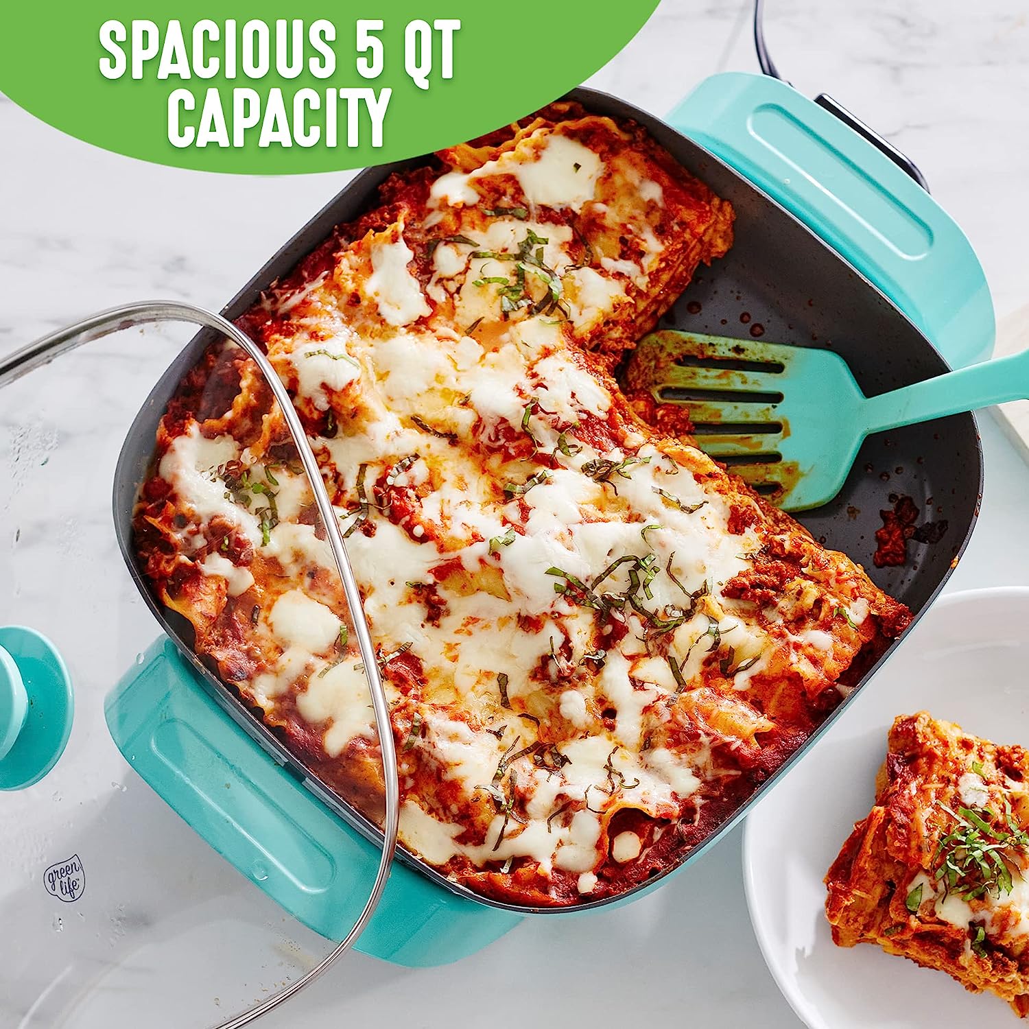 We love our pans, but sometimes the stovetop isn’t the solution. The GreenLife Healthy Power 5-in-1 Electric Skillet brings the power of our pans anywhere with an outlet. Whether you’re in a dorm, camping, the oven makes the kitchen too hot, or you just need an extra burner, this skillet is your do-it-all solution. You can fry, sauté, bake, grill, and steam with quick and easy nonstick performance. It’s basically a whole kitchen you can plug in. The easy-to-clean ceramic nonstick interior is free of PFAS, PFOA, lead, and cadmium, so you can cook without worry. A durable glass lid gives you an easy look at your meal in progress while the spacious 5QT capacity delivers enough room for family-sized portions.
