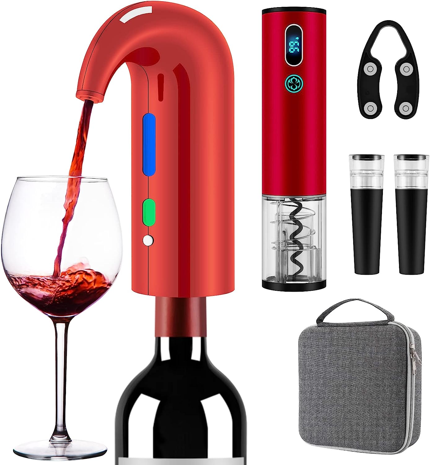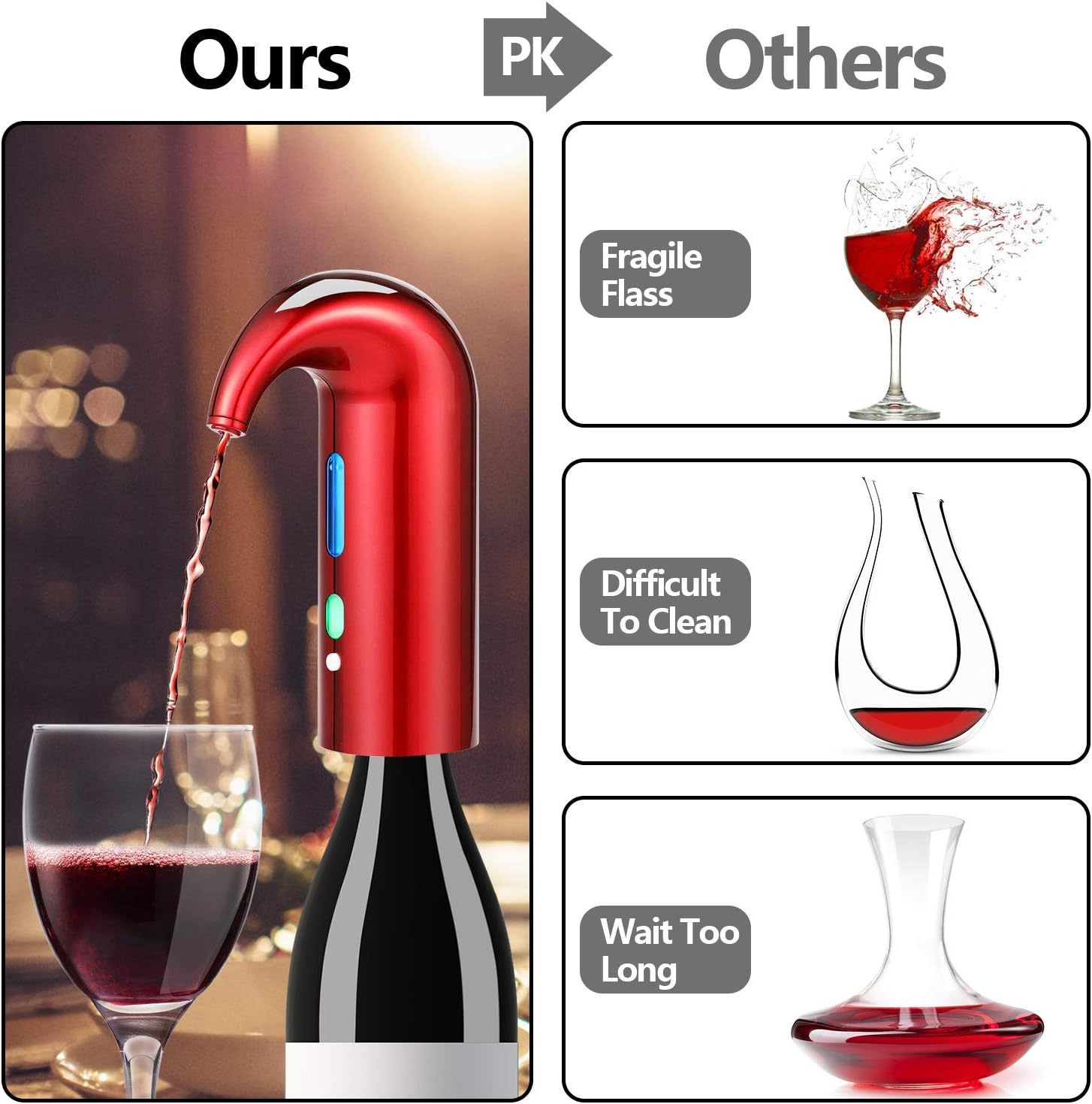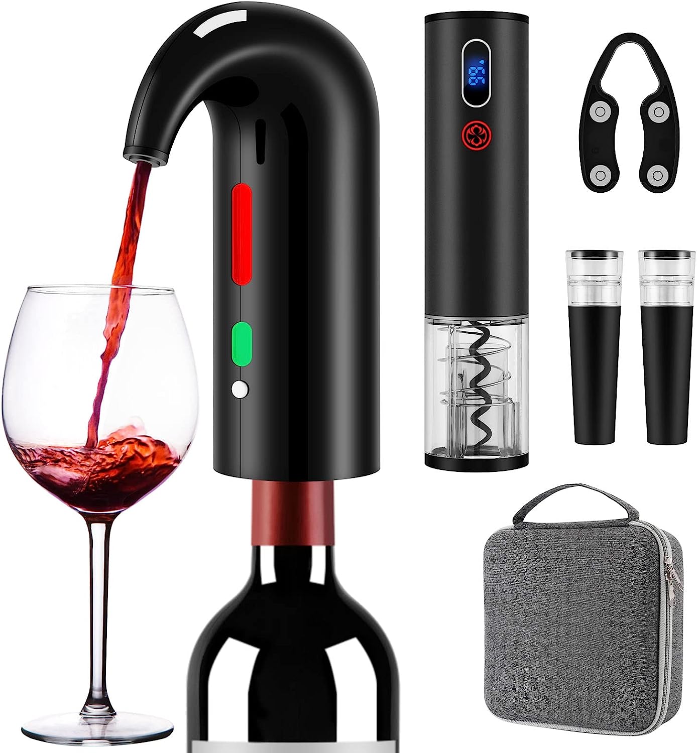 • ? ENJOY ELEVATED FLAVORS - Indulge in premium wine goodness with every sip. With the included 2-in-1 aerator and pourer, you can effectively infuse oxygen and achieve a more enhanced flavor profile while pouring, and can prevent dripping and control the flow. Vacuum Stoppers can eliminate wasted wine and preserve the flavor, keeping the wine fresh!