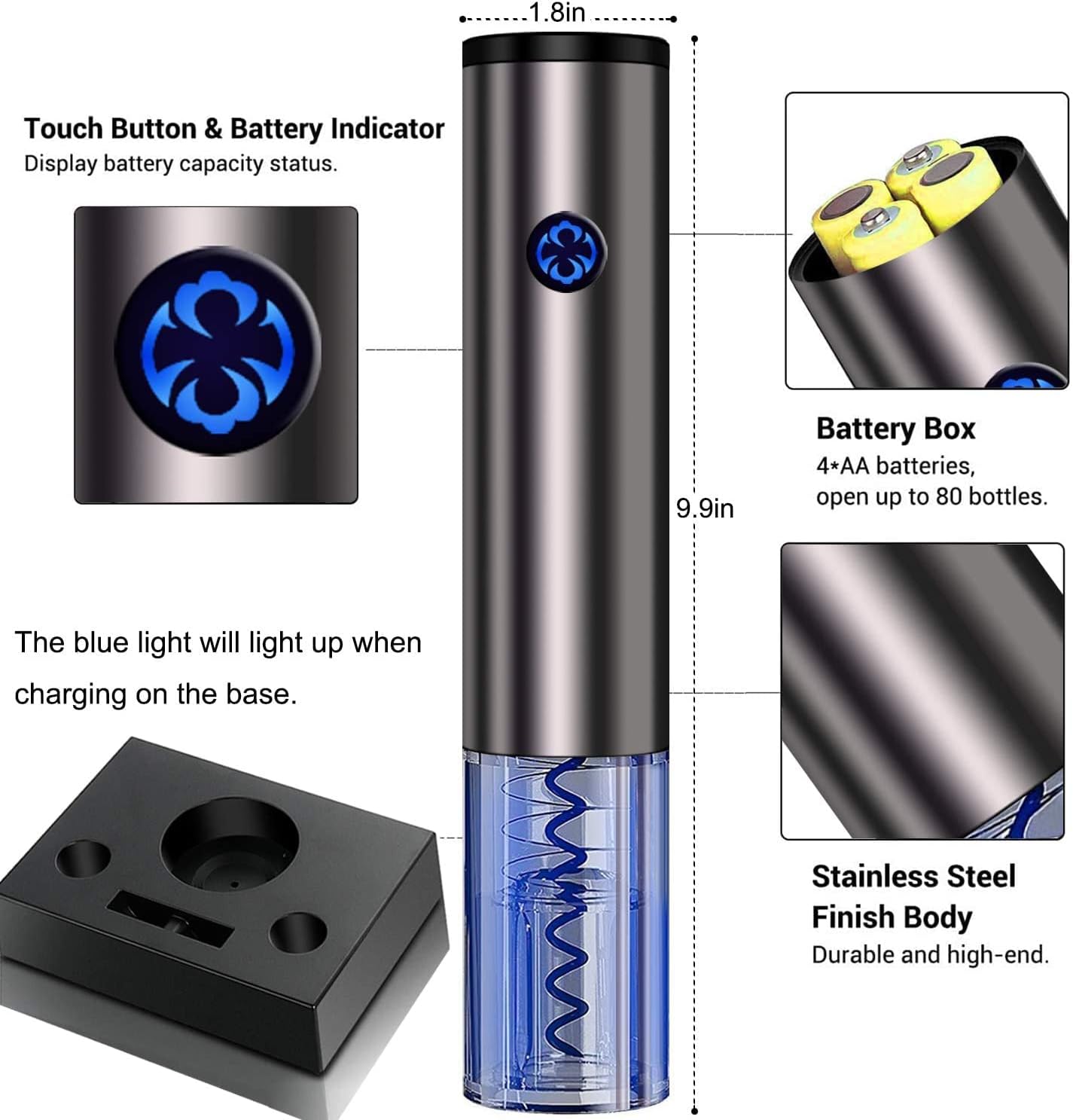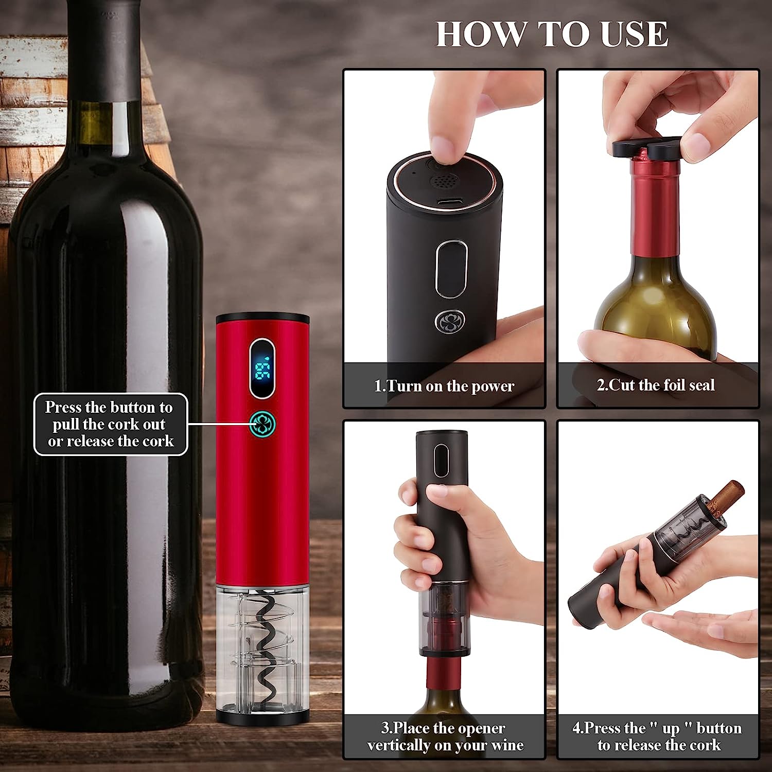 • ? GIFT-READY PACKAGING - This automatic electric wine opener set comes in beautiful box packaging, so you can confidently buy it and surprise your loved ones. It’s the perfect present for any occasion!