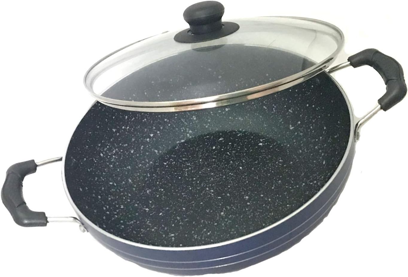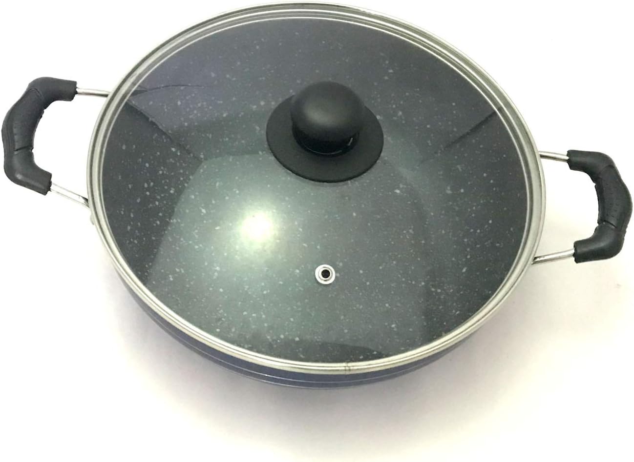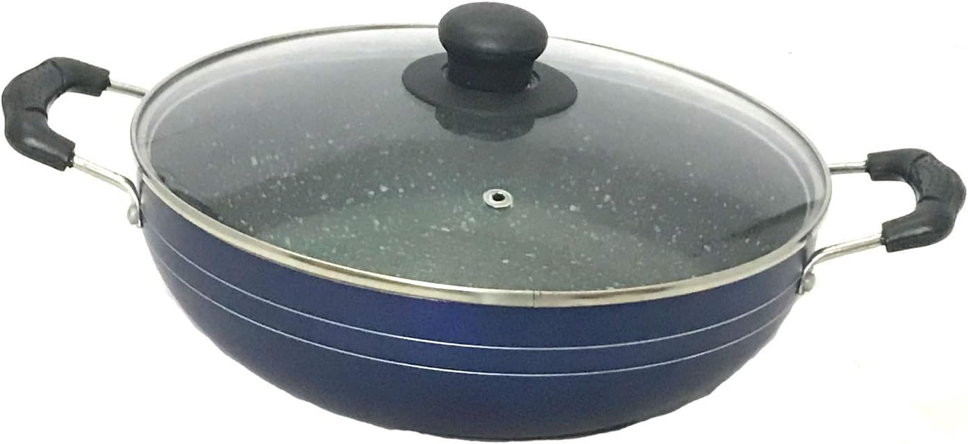 This is a non-stick deep frying pan which can also be used for stir frying.vAll but one of this nonstick deep kadhai have a round bottom and two short handles. Heavy gauge aluminium is used to make this nonstick kadhai to ensure durability for everyday use. You can easily hold this kadhai while stirring your dish as these handles stay cool even when the utensil is placed on a stove. Cleaning this nonstick kadhai is Easy and you can make use of nylon pads or sponge pads to keep it as good as new. Designed for style and comfort, this kadhai is a must-have in your kitchen. Uniform distribution of heat is extremely important to cook food faster and hence save fuel (gas). non-stick cookware evenly distributes heat so that food is cooked faster than other cookware specifications. Gas stovetop Induction compatible . Cook healthy, eat healthy and stay healthy. Great for deep frying samosa, gujiya, papad, cutlet and many more items. Residue free cooking which avoids burning of the Leftover oil that is collected in the sides making pan sticky & unhealthy