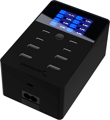 SABRENT 252W Charger ‰ÛÒ 8-Port USB PD 3.0 with LCD Display, Fast Charging for USB-C & USB-A Devices, Laptops, Phones, Tablets, Gaming Consoles ‰ÛÒ PPS, Overcharge Protection, Travel-Friendly (AX-8PTC)