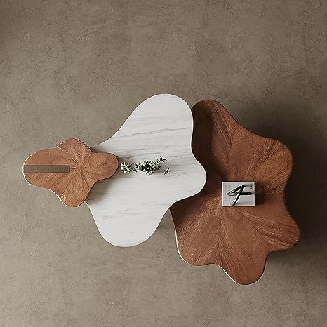 Cloud Coffee Table Set of 3 for Living Room, Irregular Living Room Table with Steel Frame, Center Table Set for Reception Room (Cloud Walnut)