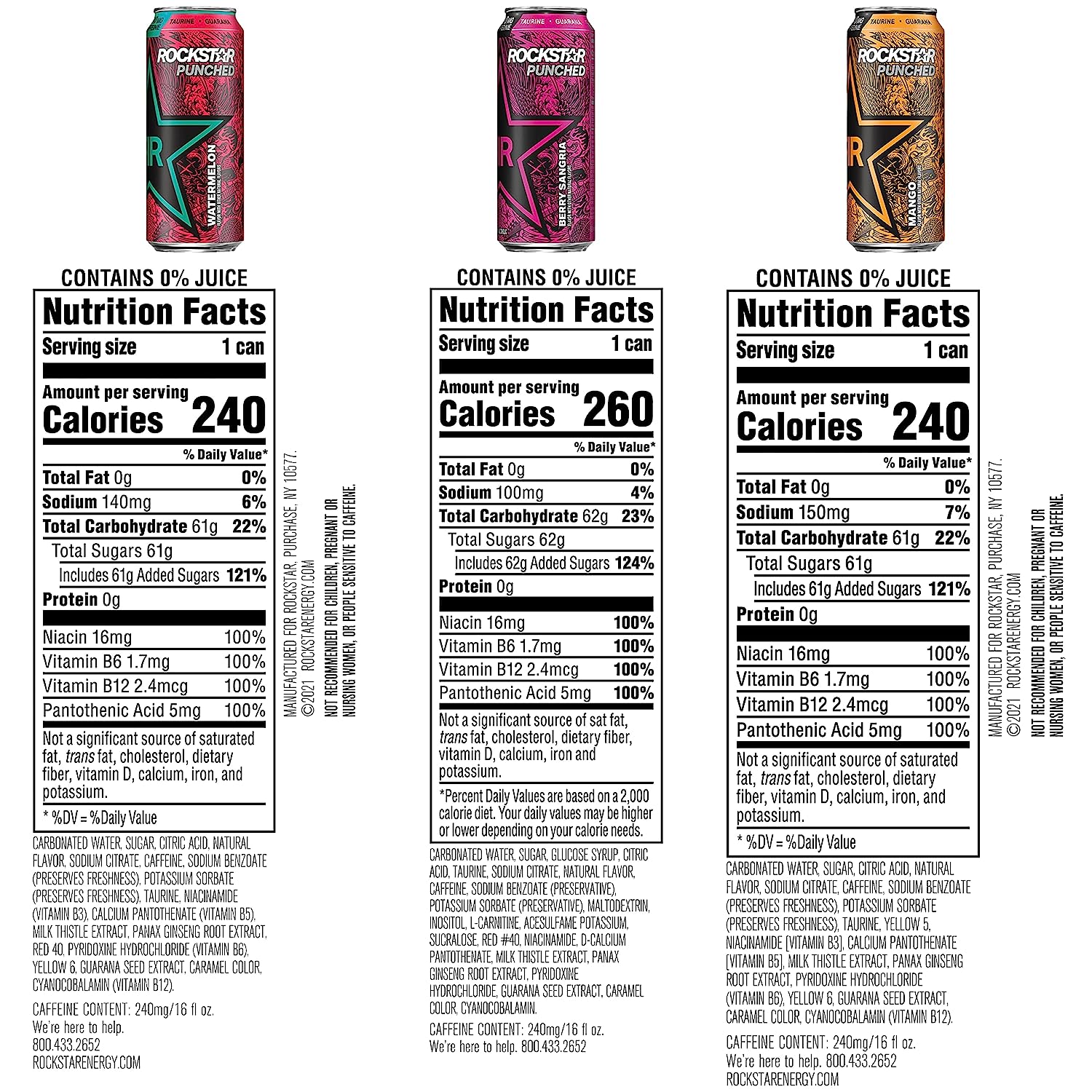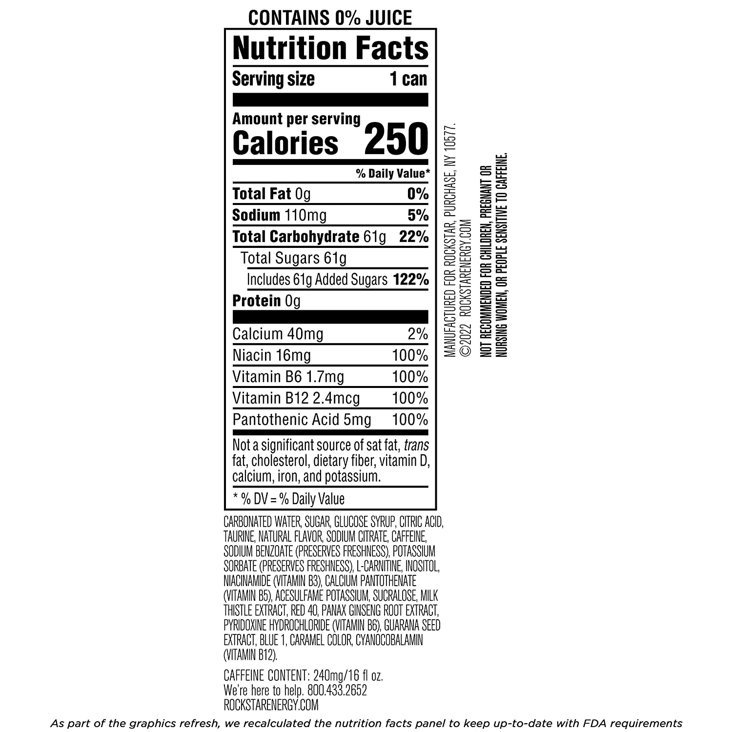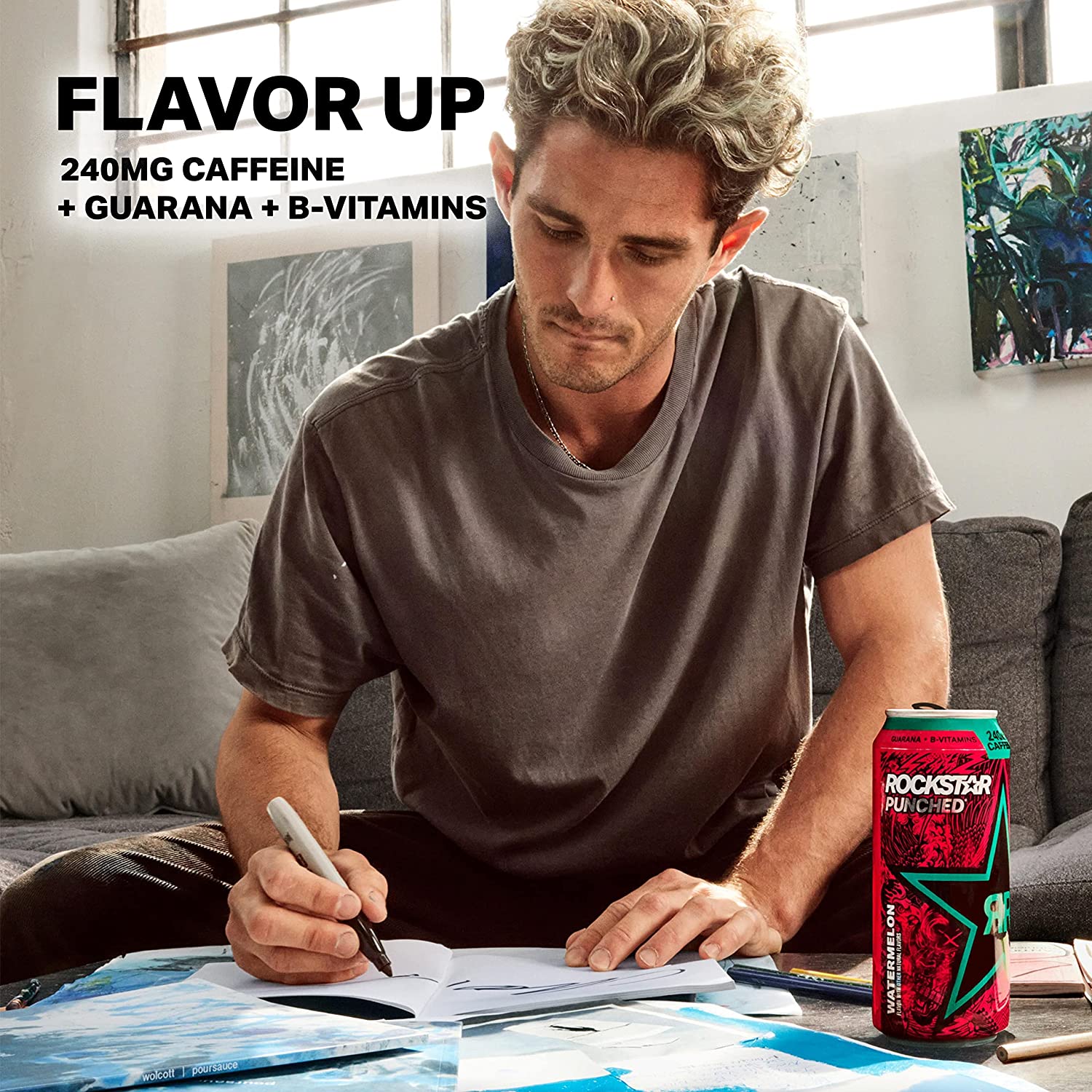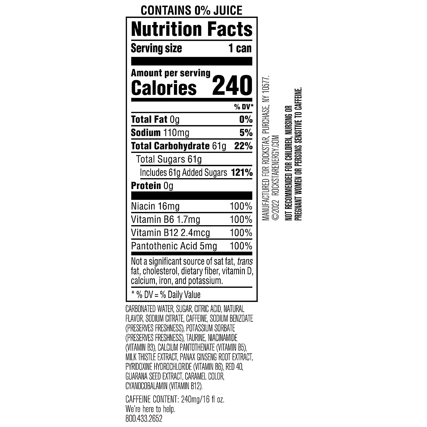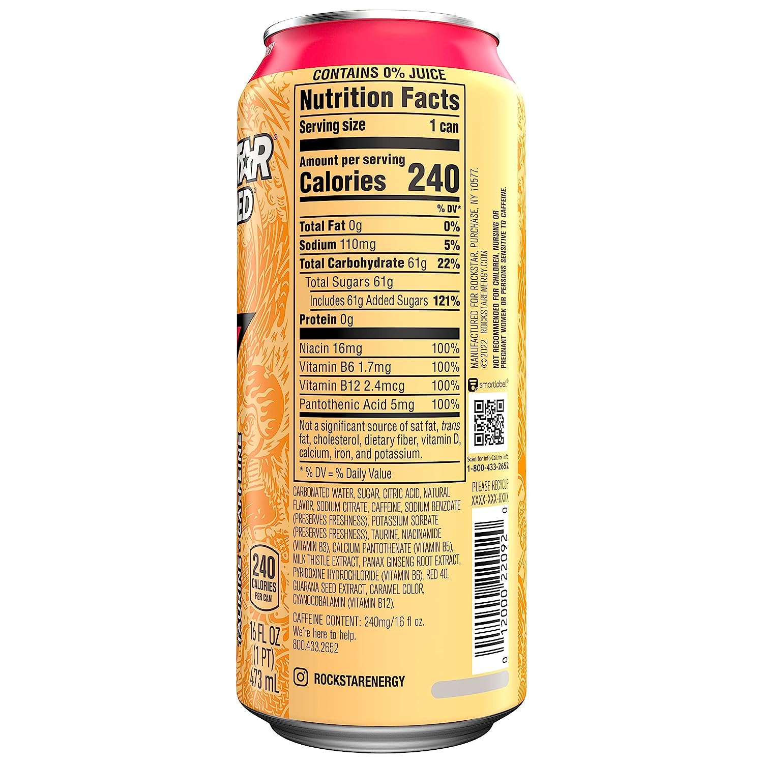 Take your hustle to the next level with Rockstar energy drink. This is bold, unapologetic flavor with a blend of B-vitamins, guarana extract, and 240mg caffeine per 16fl oz.
