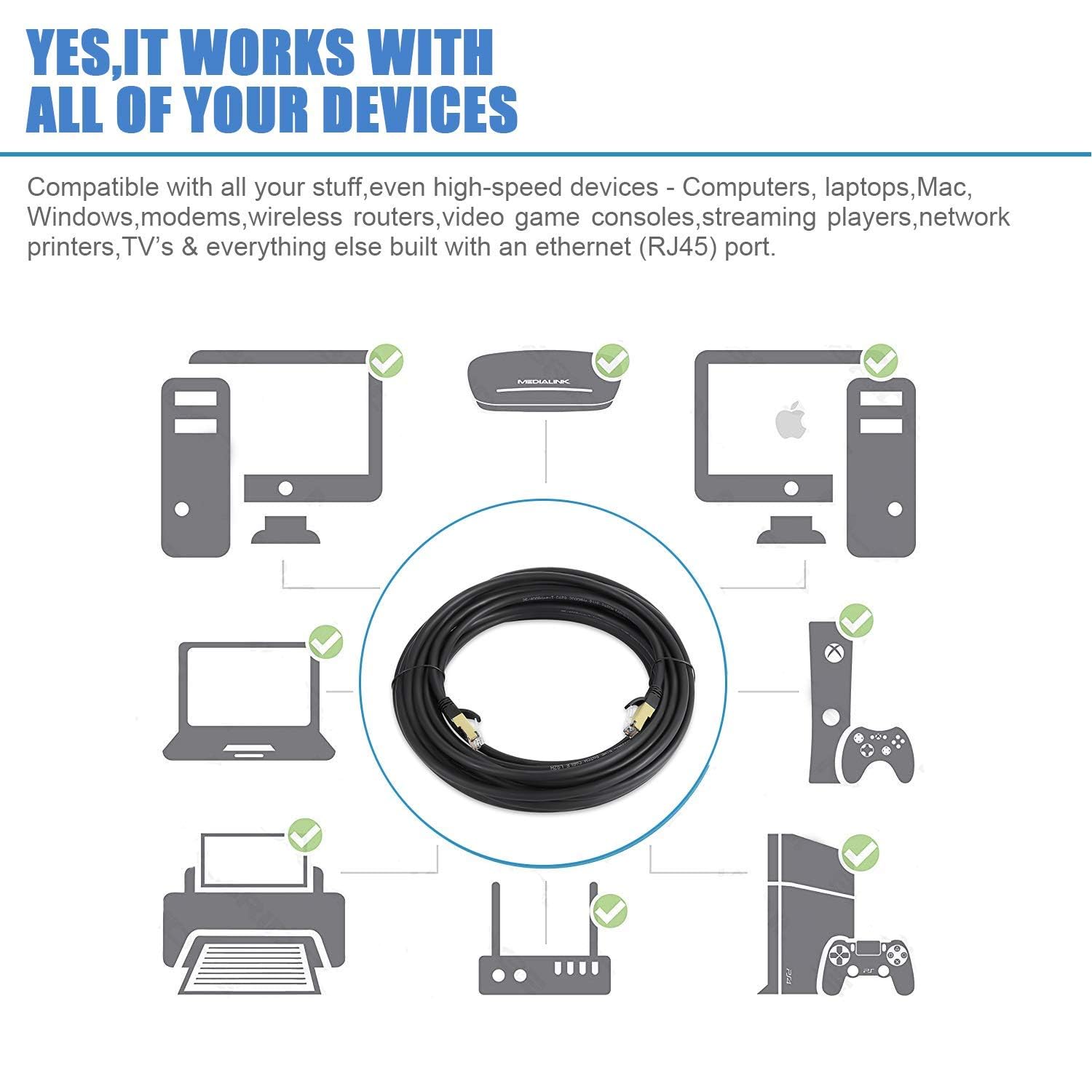 Cat8 Ethernet cable is designed for high performance network, such as, server applications, cloud computing, data centers, and other high performance computer networking application. Perfect to connect your gaming devices, Xbox, Network adapters, Hubs, Switches, Routers, DSL/Cable Modems and Patch Panels. Cat8 is your best choice for smart home & office.
