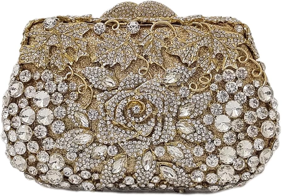 Elegant Rose Flower Crystal Clutch Evening Bags for Women Formal Wedding Bridal Party Floral Rhinestone Handbags Purse