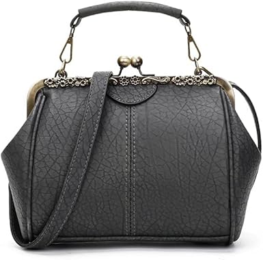 ROUROU Retro Hollow Handbag for Women Leather Shoulder Bag Evening Clutch Bag Kiss Lock Closure Crossbody Bag Purse