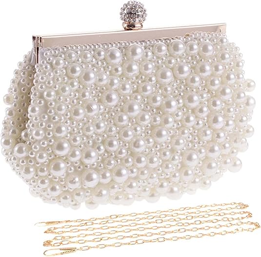 UBORSE Pearl Cutch Purses for Women Evening Bags Formal Beaded Wedding Bridal Purse Ladies Prom Cocktail Party Handbag