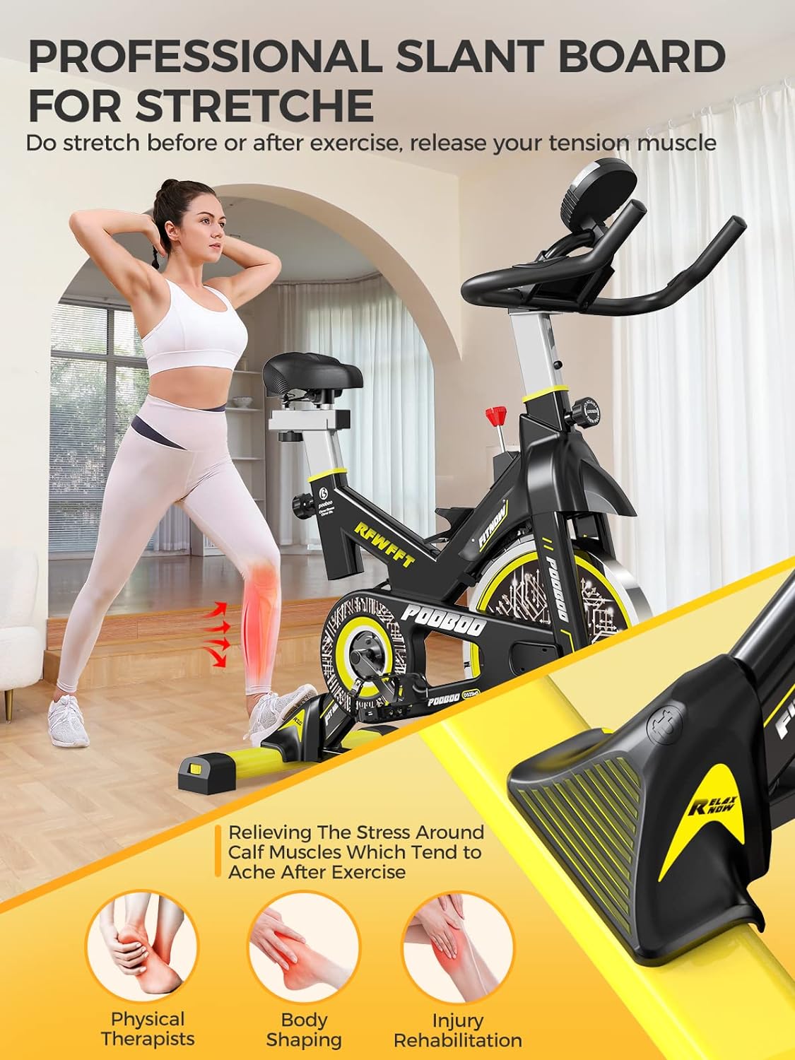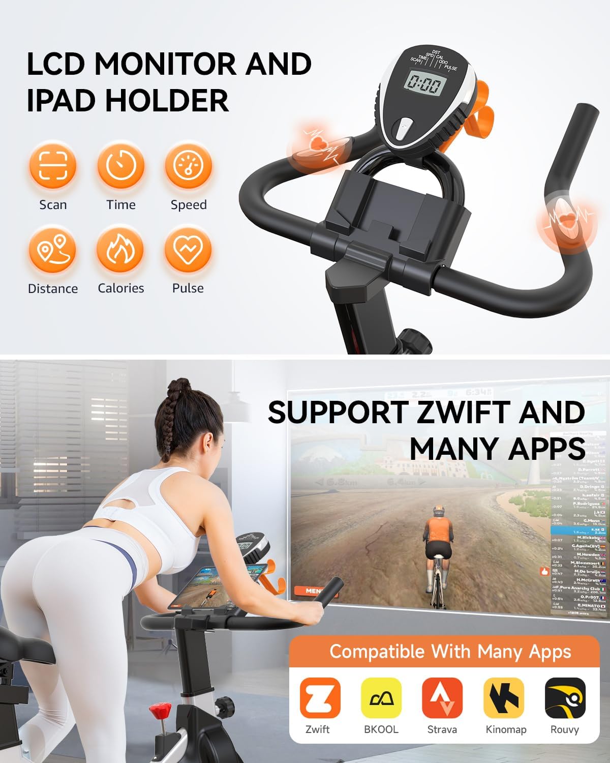 • Safe & Convenient: Press the resistance bar to stop the flywheel immediately. Monitor holder can support the tablet, phones, water bottle. Transport wheels help you easily move the exercise bike. There is also a convenient adjustable knob, with a simple twist, you can adjust the resistance to fulfill different workout plans.