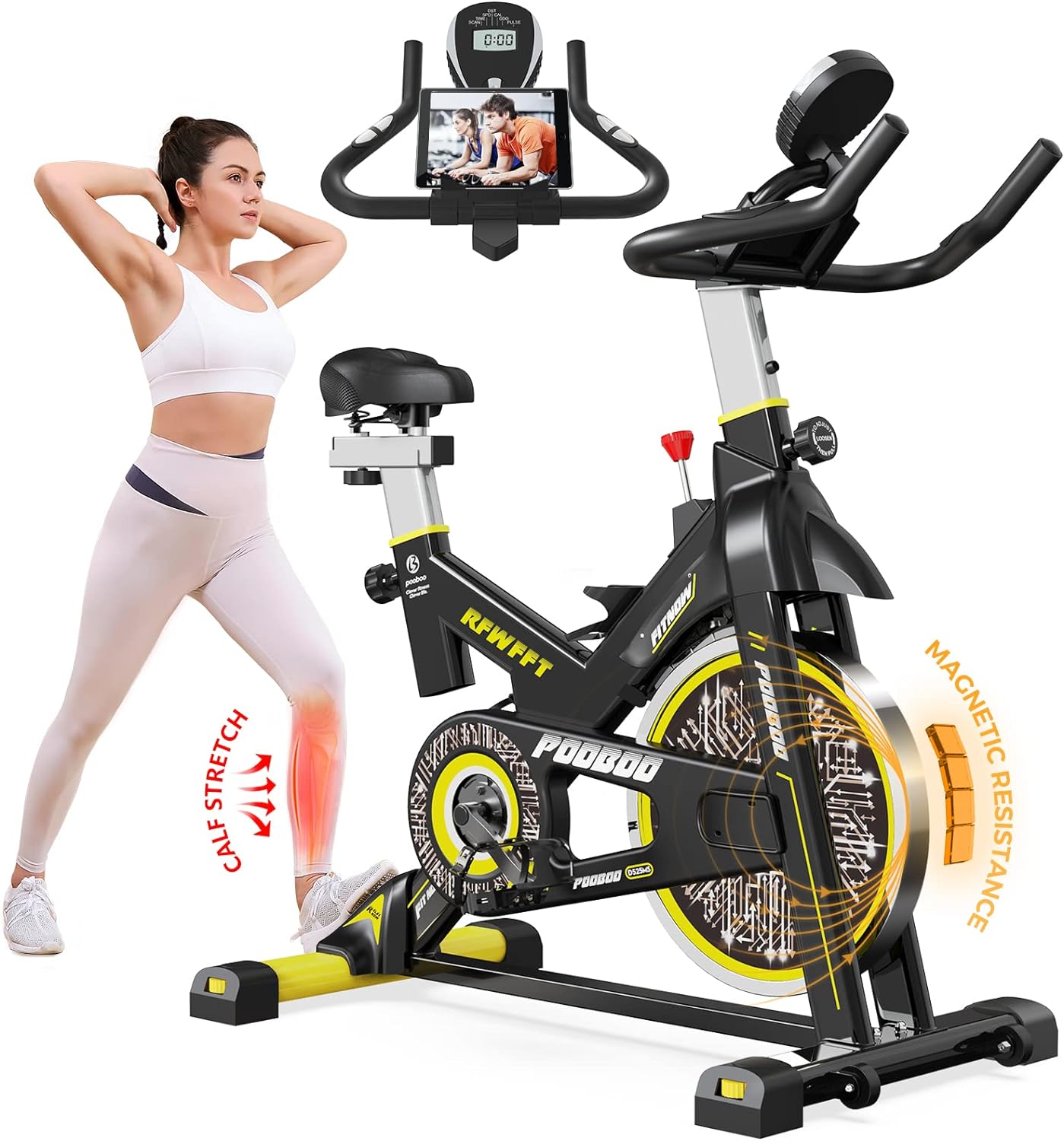 pooboo Exercise Bike, Adjustable Magnetic Resistance Silent Belt Drive, Indoor Cycling Bike for Home Cardio Gym, Fitness Stationary Bike Machine with 350lbs/300lbs Weight Capacity, Monitor with Pulse & Ipad Mount &Upgraded Version Seat