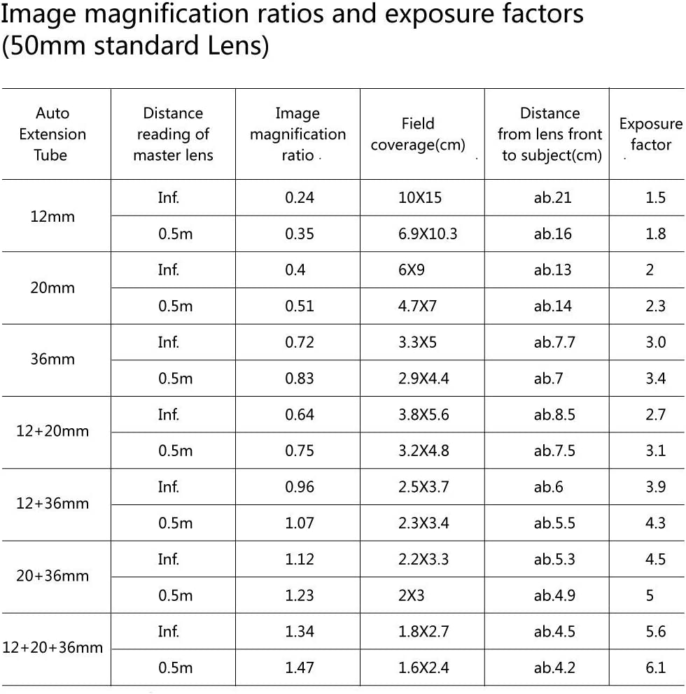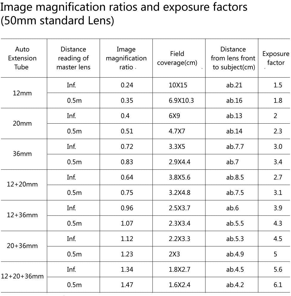 • Macro extension tube can be used alone or in superimposed,When using the extension tubes alone (10mm or 20mm or 36mm ) or combination (10mm+20+36mm=66mm),support AF(Auto-Focus), AF Motor Protection: while using 3 rings together, we suggest you to use manual focus or Increase the lens focal lengths for it's a little bit difficult to auto-focus with 3 rings together, and also protecting your lens motor