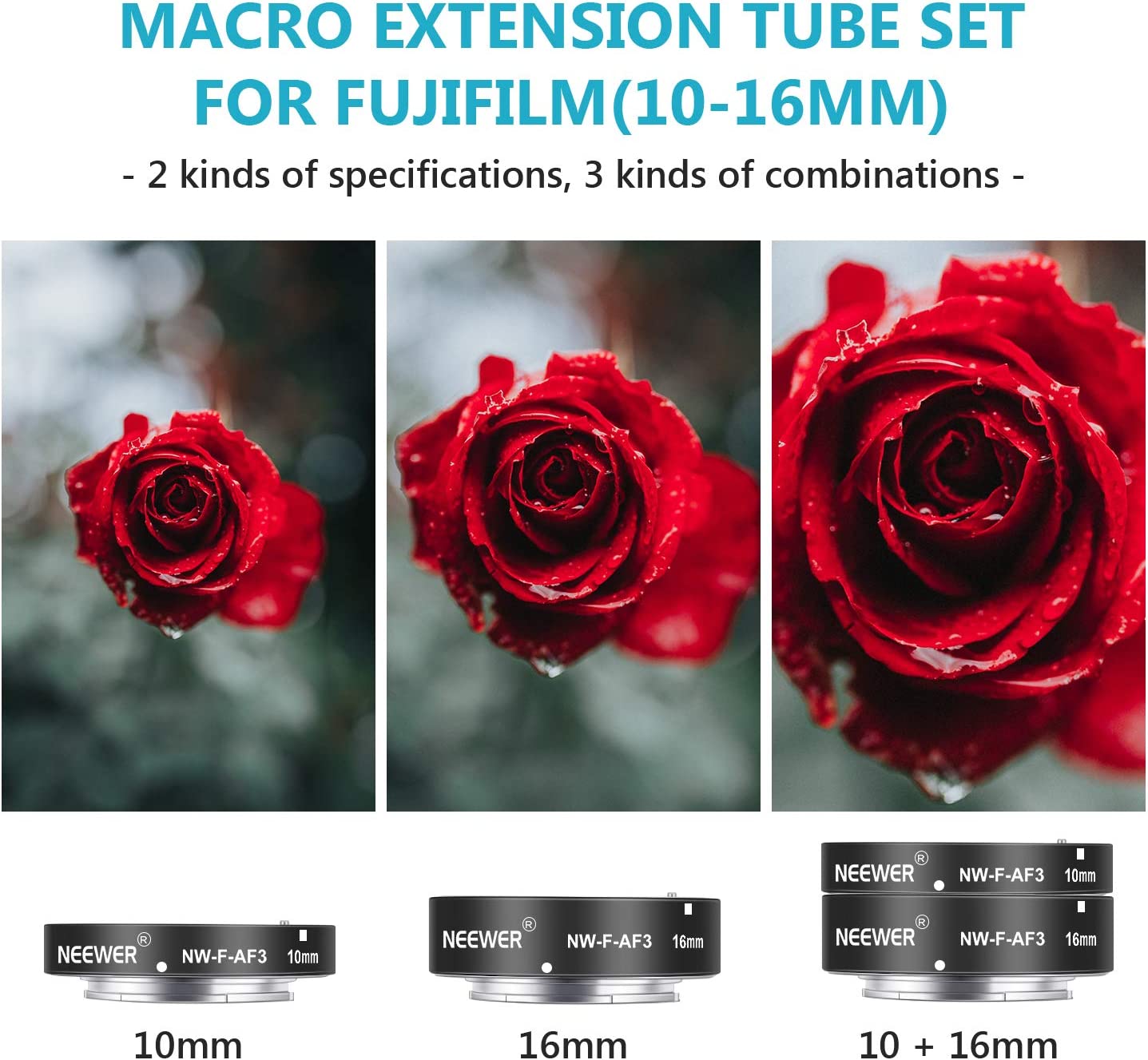 Neewer AF Auto Focus Macro Extension Tube 10mm&16mm Compatible with Fujifilm X-Mount Mirrorless Camera X-T4 X-T3 X-T2 X-T1 X-T30 X-T20 X-T10 X-PRO3 X-PRO2 X-T200 X-T100 X-A10 X-A7 X-A5 X-E3 X-E2S X-H1