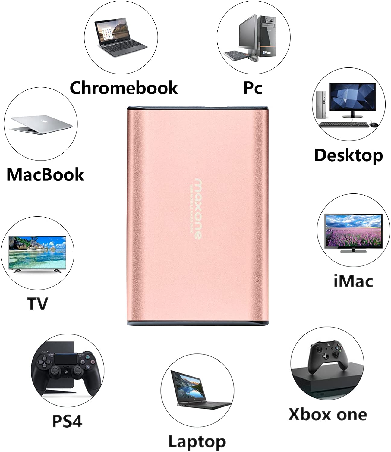 Maxone 500GB Ultra Slim Portable External Hard Drive HDD USB 3.0 for PC, Mac, Laptop, PS4, Xbox one - Charcoal Grey