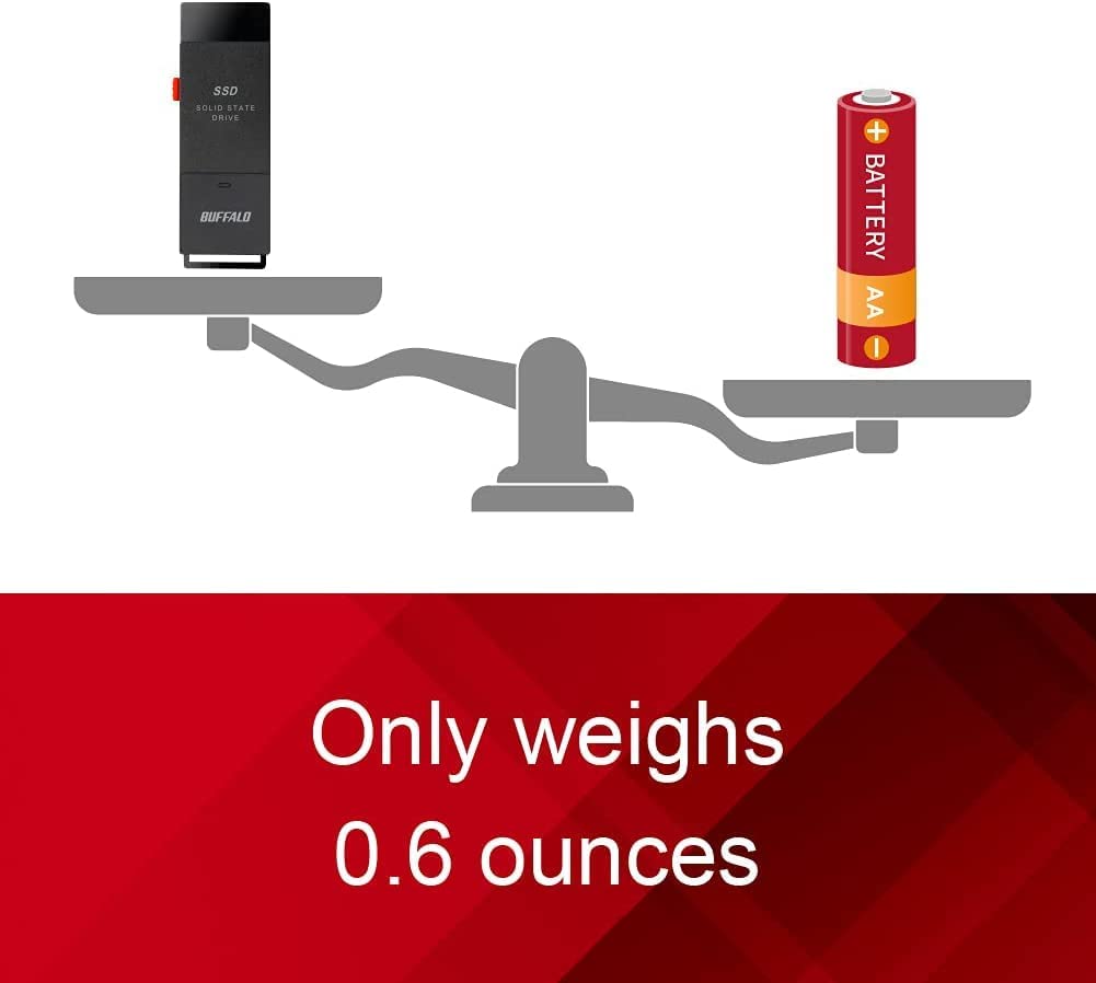 • IDEAL ON-THE-GO ACCESSORY - Quickly copy your large data. If you are a professional in need of fast and secure storage, the Buffalo SSD is ready for on-the-go backup for photos, videos, docs, and more.