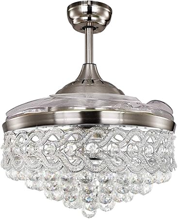 42 inch Crystal Ceiling Fan with Lights and Remote Control 3 Light Level, Modern Luxury Chandelier Fans Lighting with 3 Speeds and Retractable Blades for Dining/Living Room Bedroom
