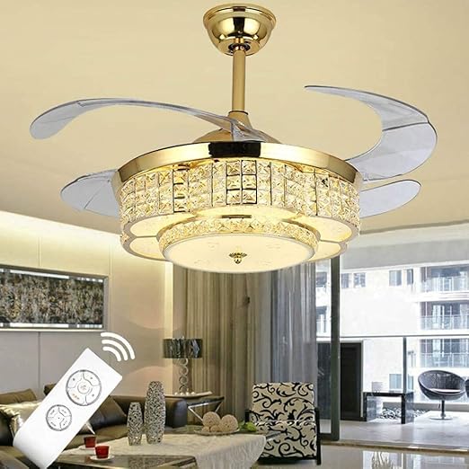 42" Invisible Ceiling Fan Lights LED Rrtractable Fan Chandelier with Remote Control, Modern Ceiling Light Kits with Blades Fans (Gold-04)