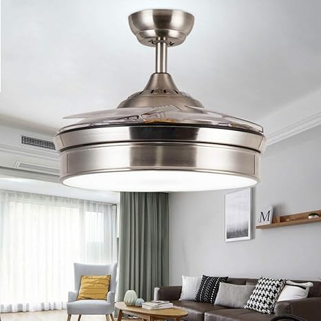 42" Invisible Ceiling Fan Lights LED Rrtractable Fan Chandelier with Remote Control, Modern Ceiling Light Kits with Blades Fans (Silver-04)
