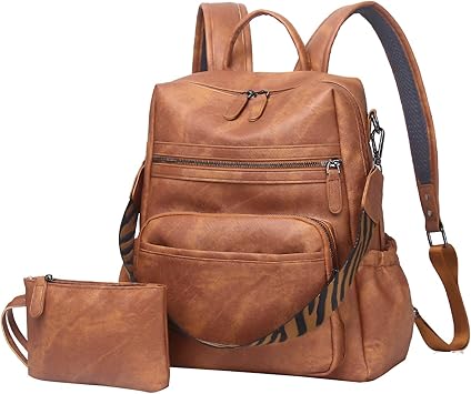 Women Backpack Purse Bag PU Leather Travel Backpack Purse for Women Ladies Shoulder Bags Satchel Handbag 2 Piece Brown