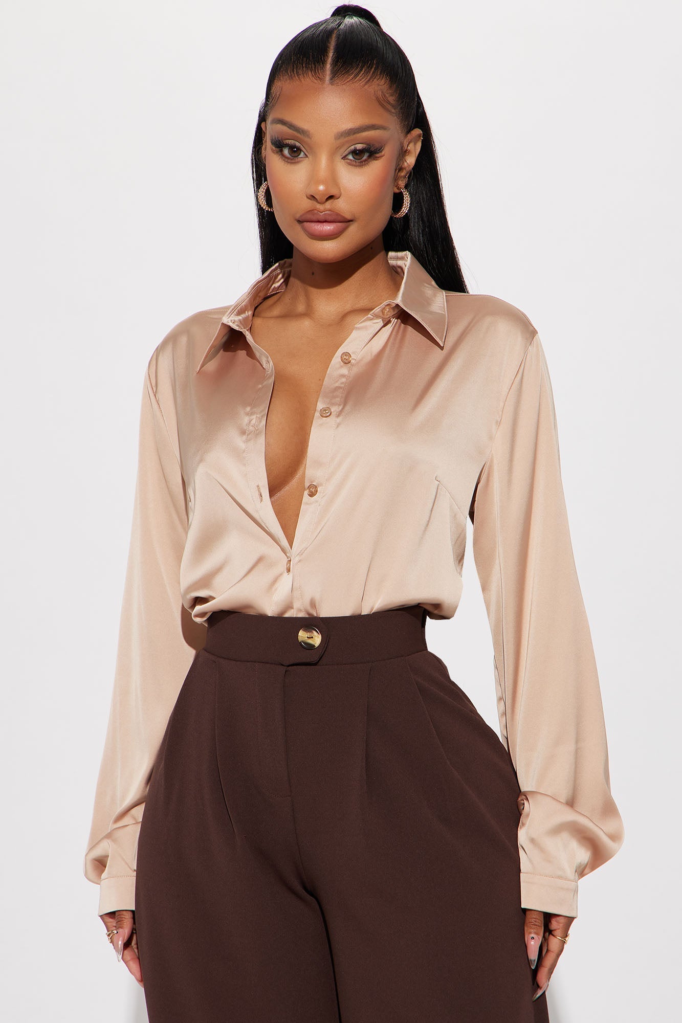 Smooth Talkin' Button Down Top - Taupe