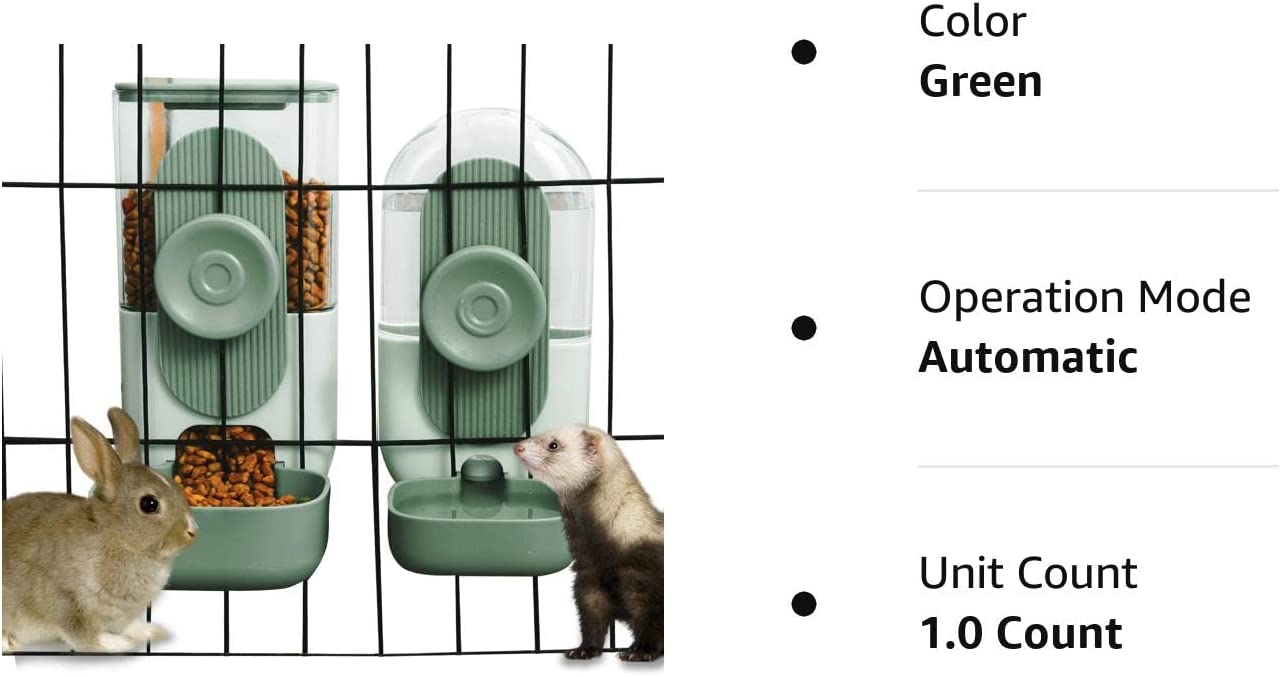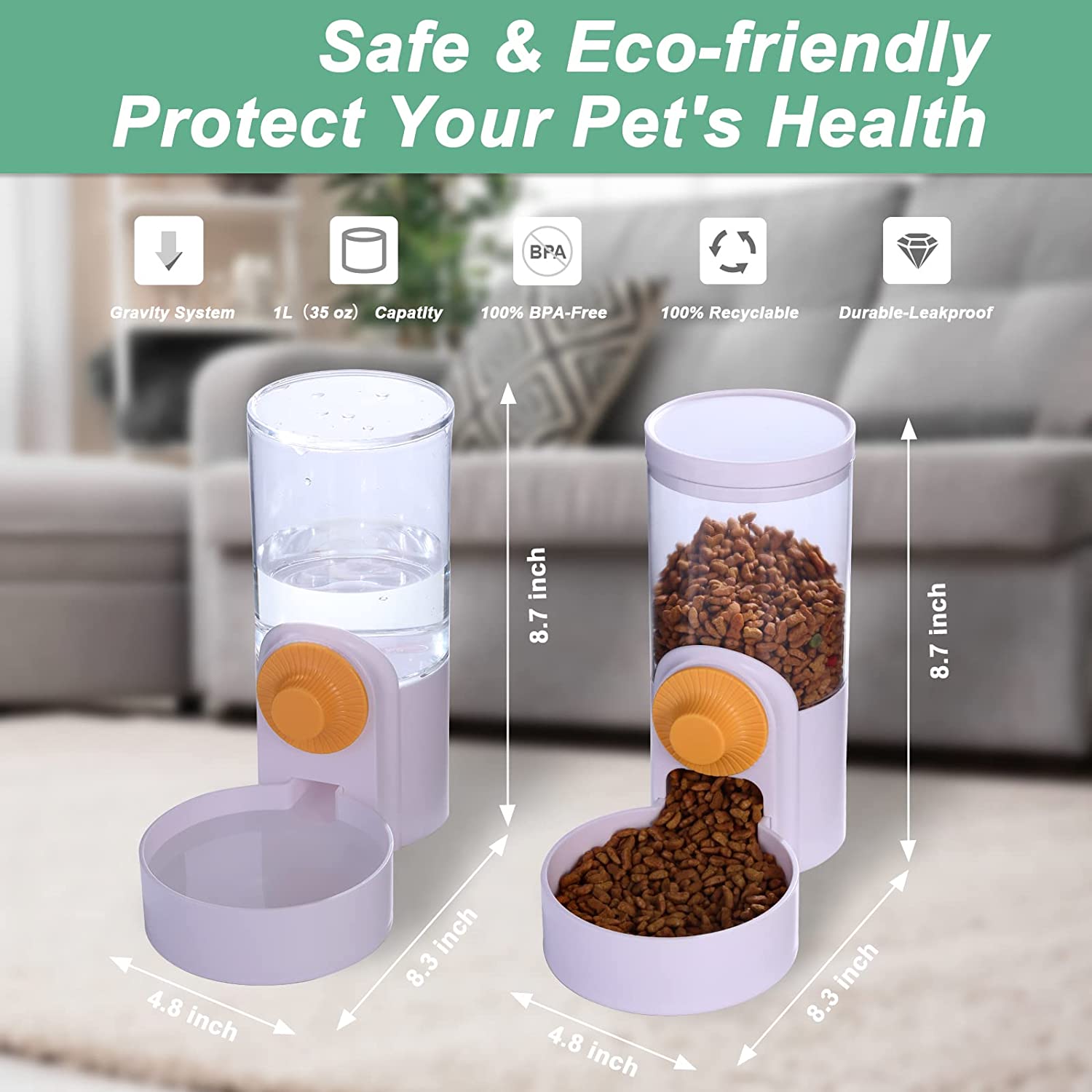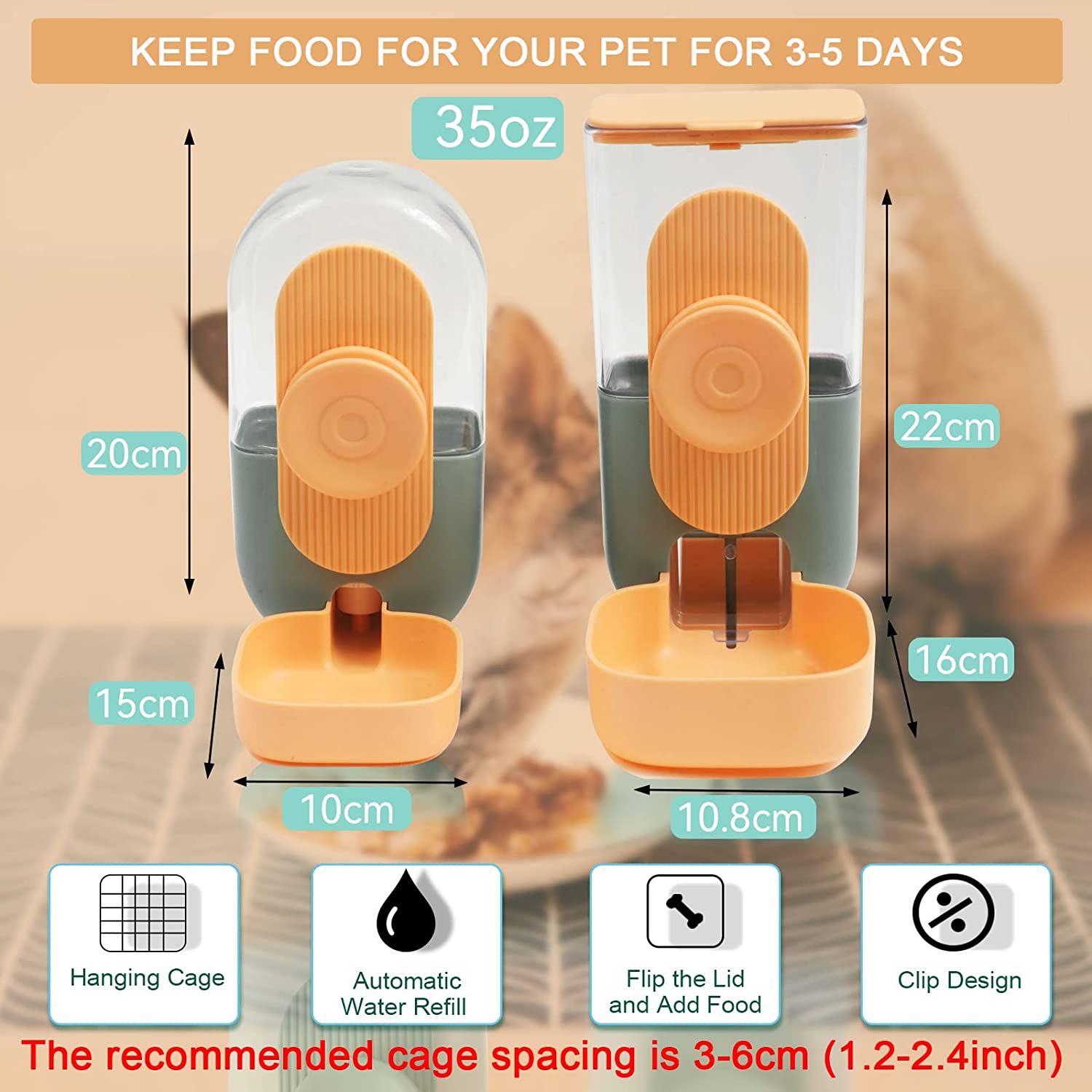 Lemtrflo Hanging Automatic Food Water Dispenser,Gravity Rabbit Feeder and Water Dispenser Set,Cage Cat Food and Water Dispenser Food Bowl for Bunny Chinchilla Guinea Pig Hedgehog Ferret