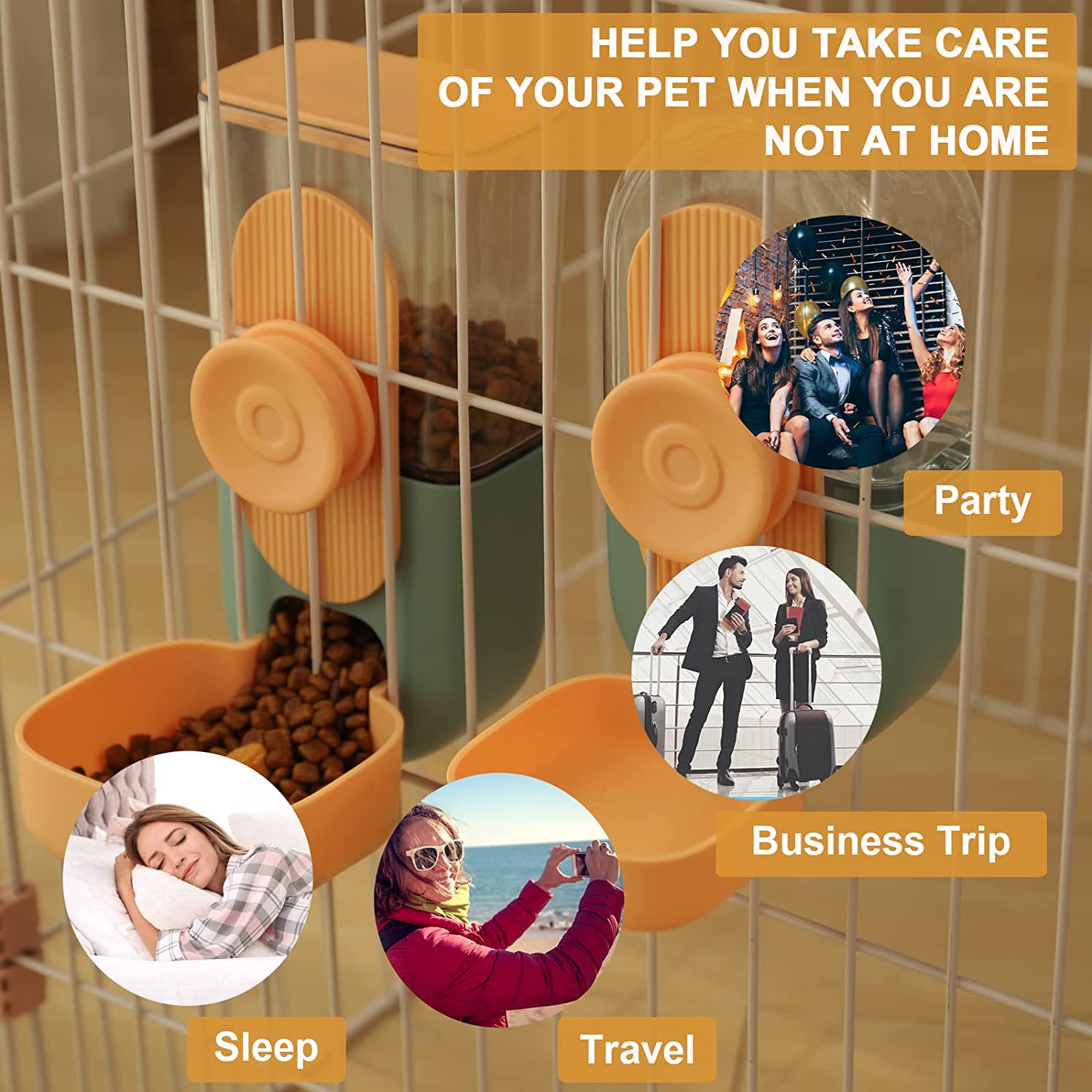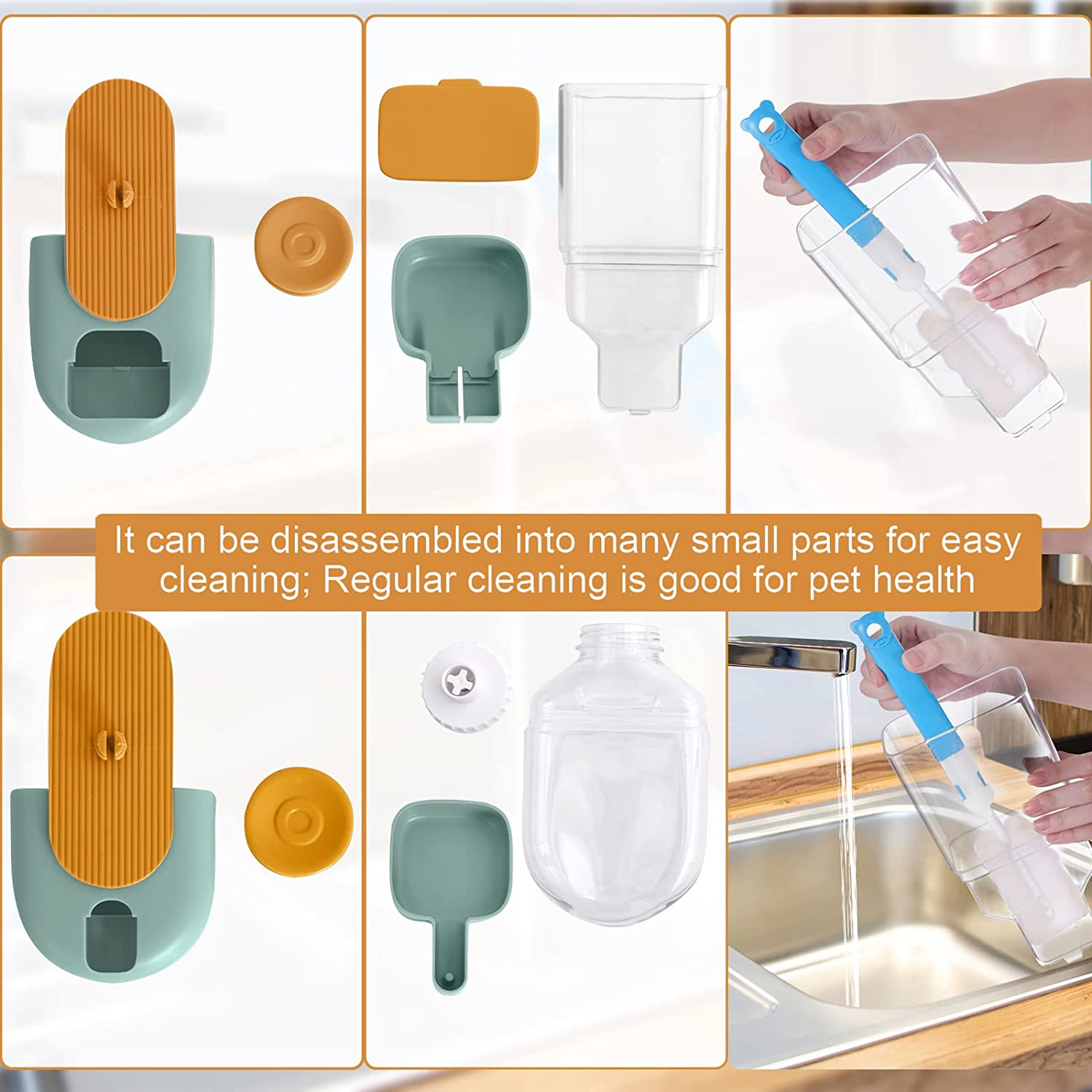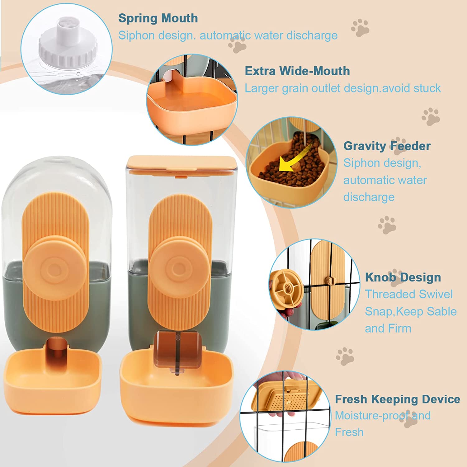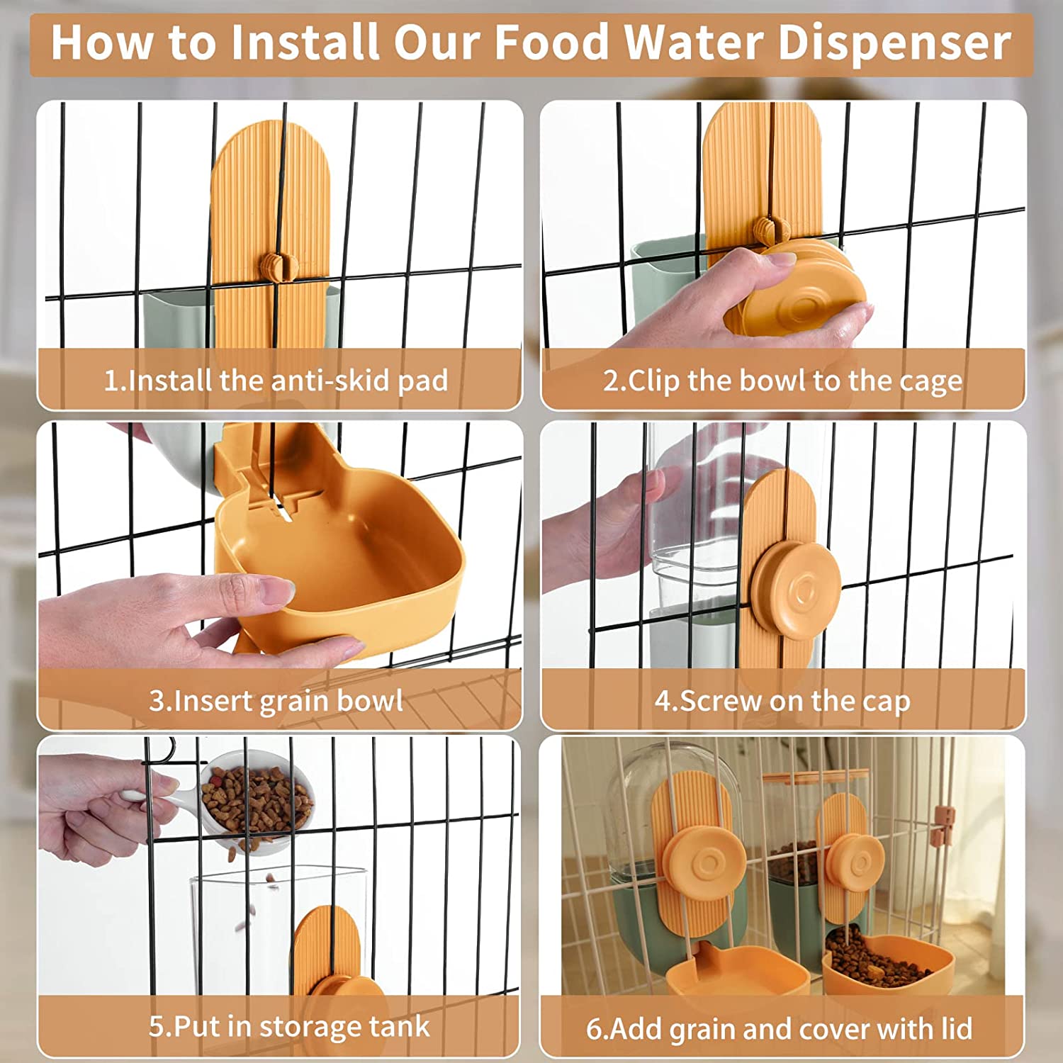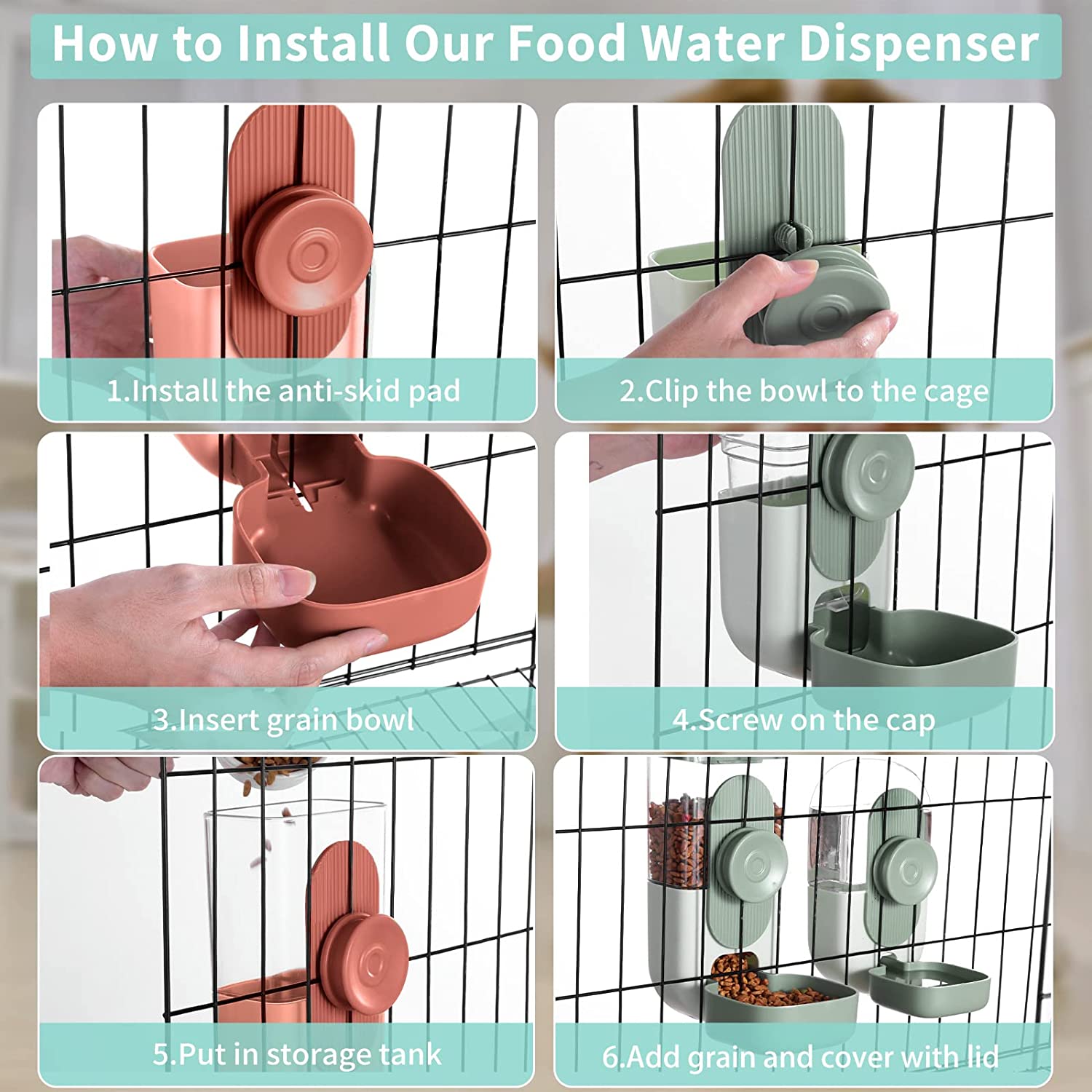 • [Knob Hanging Cage Design]:The hanging cage design of dog food dispenser makes good use of space. It is specially designed for small pets locked in the cage. When adding food and water, it does not need to be disassembled. It can be added outside, which is clean and sanitary