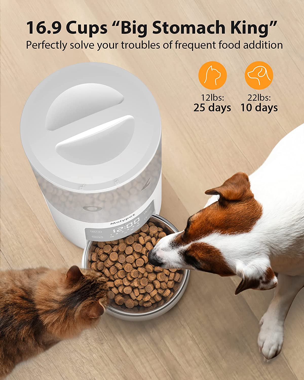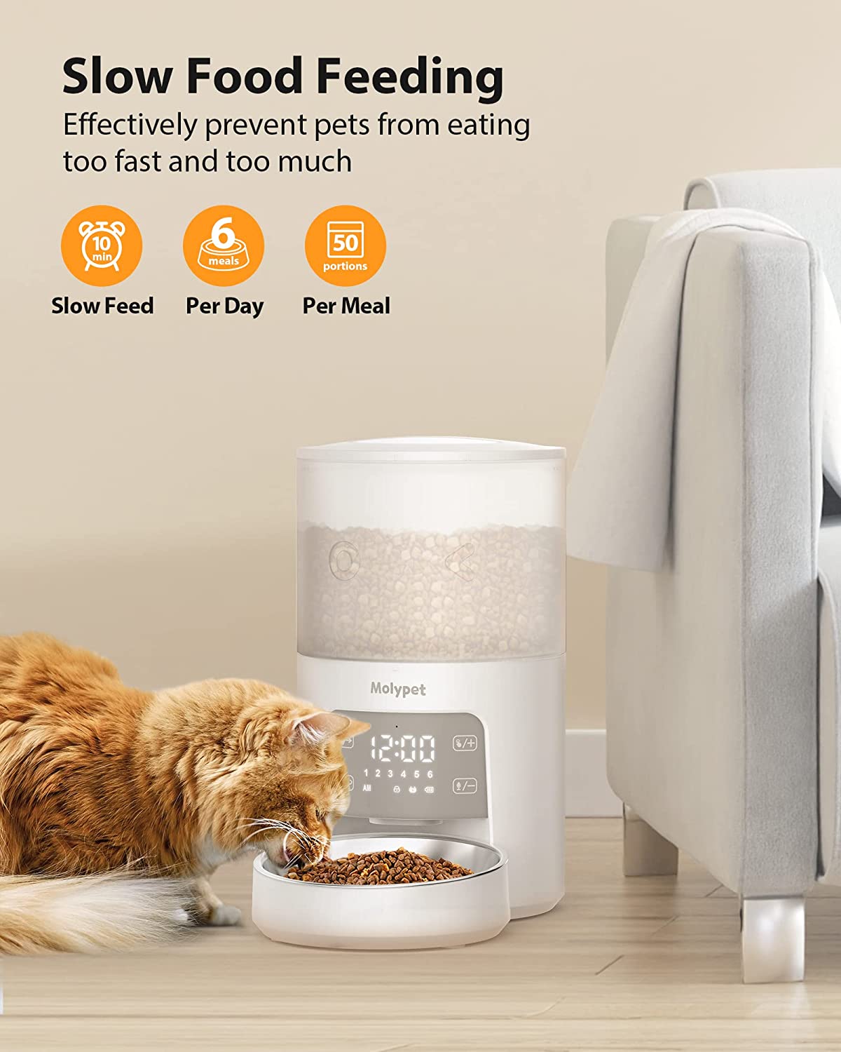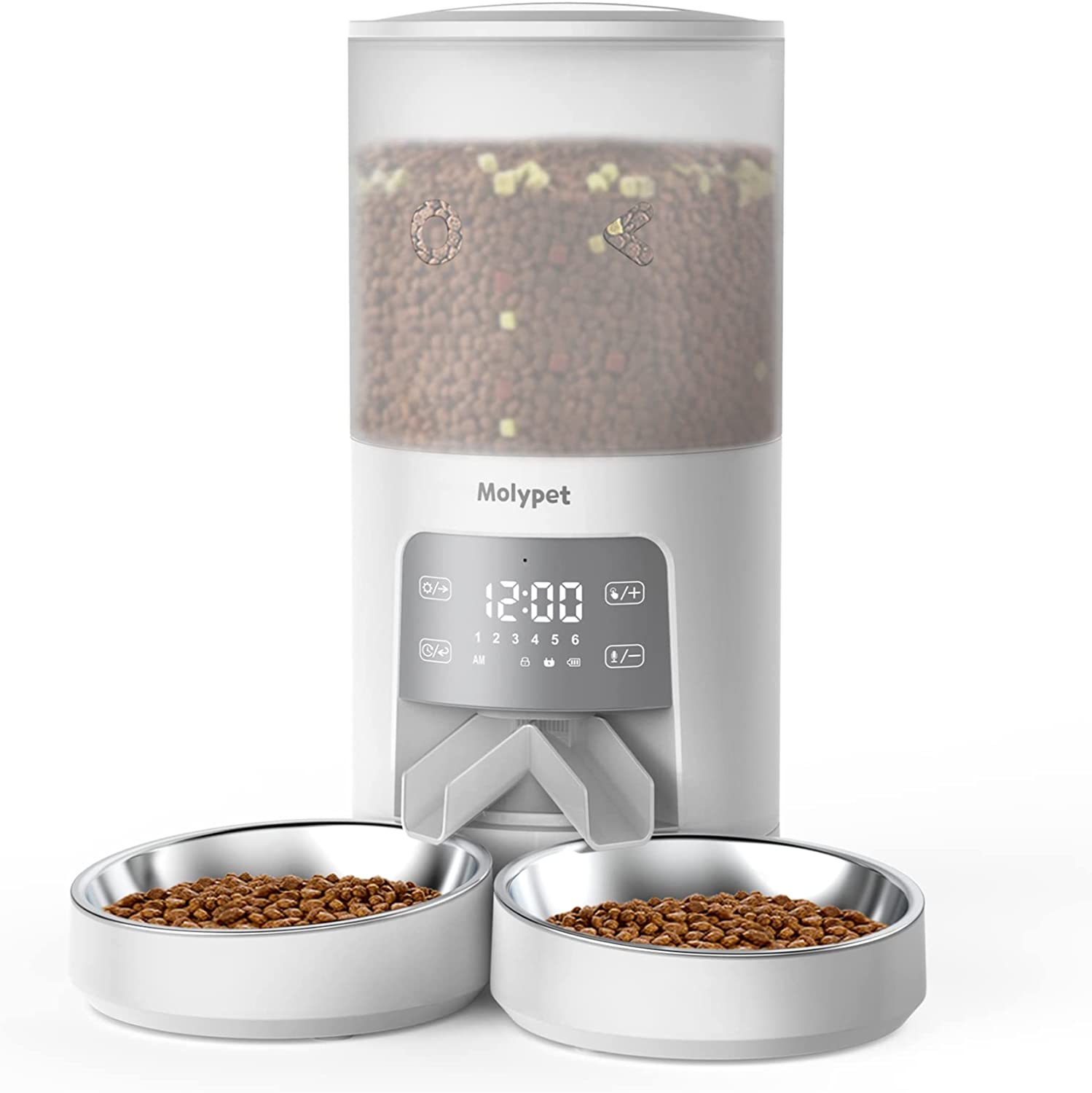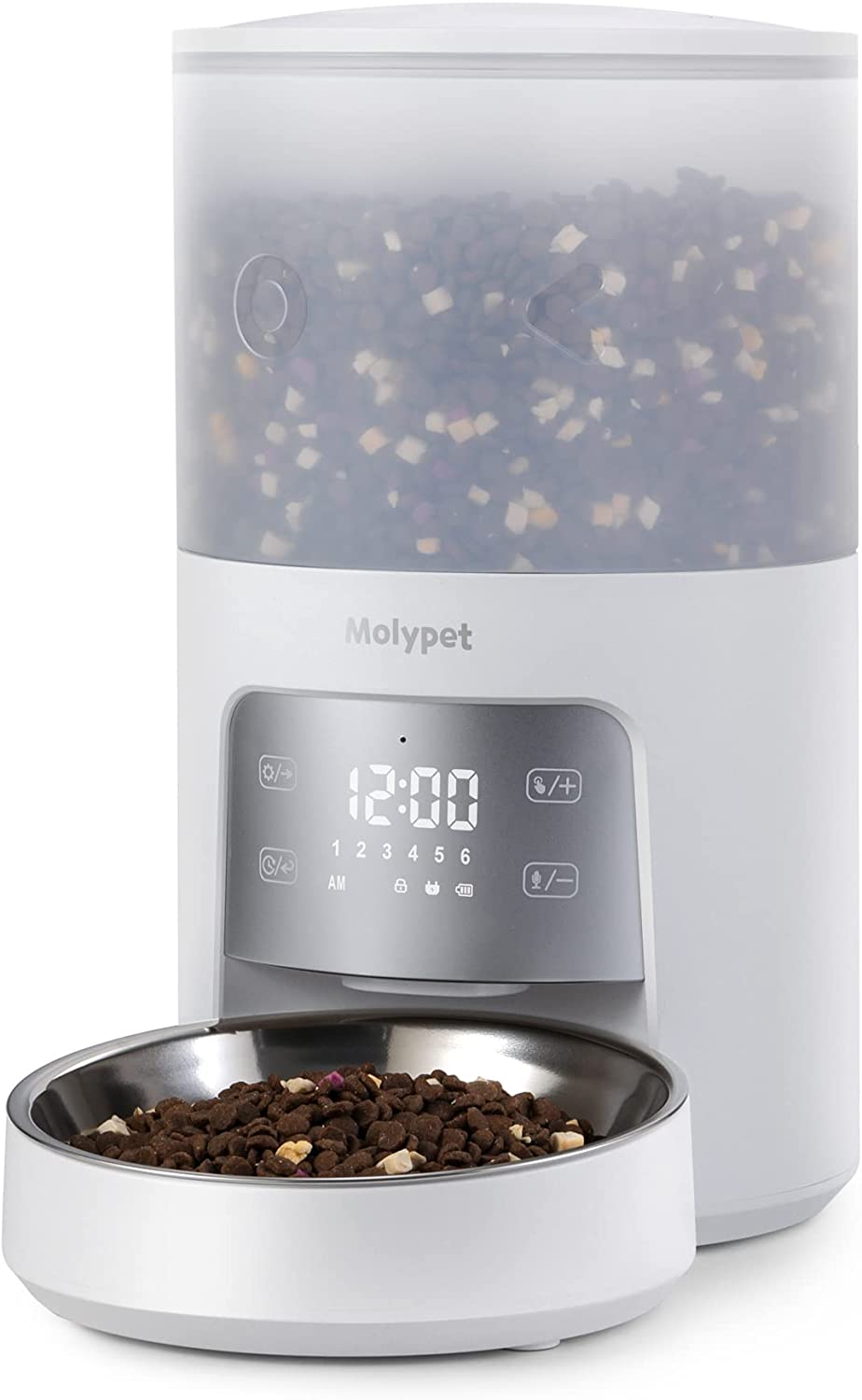 Molypet Automatic Cat Feeders with Timer - 4L Cat Food Dispenser of 6 Meals with 10S Voice Recorder and Desiccant Bag, Support Dual Power for Cats and Dogs