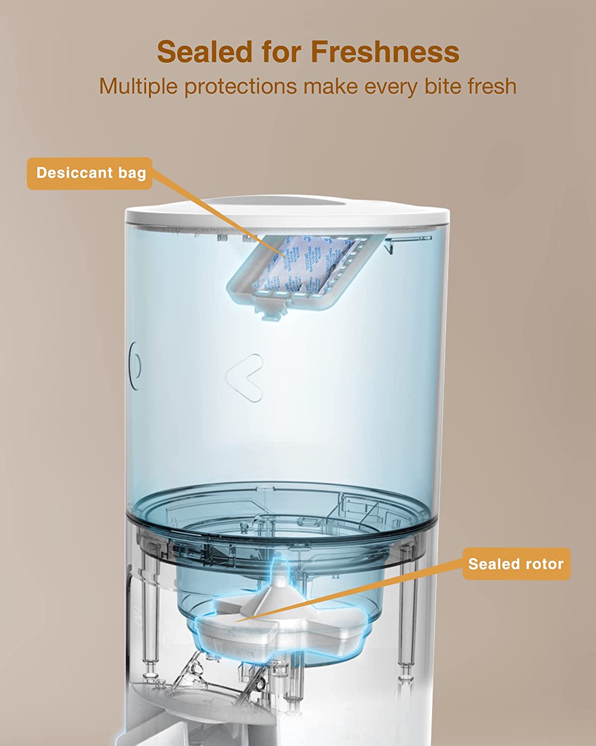 • 【Large-capacity Food Storage】 This 4L dry food dispenser can feed an adult cat for about 25 days, and you don’t have to worry about moisture for long-term storage, because it has multiple protections such as desiccant bag and sealing strip, which can well maintain the freshness and quality of food.