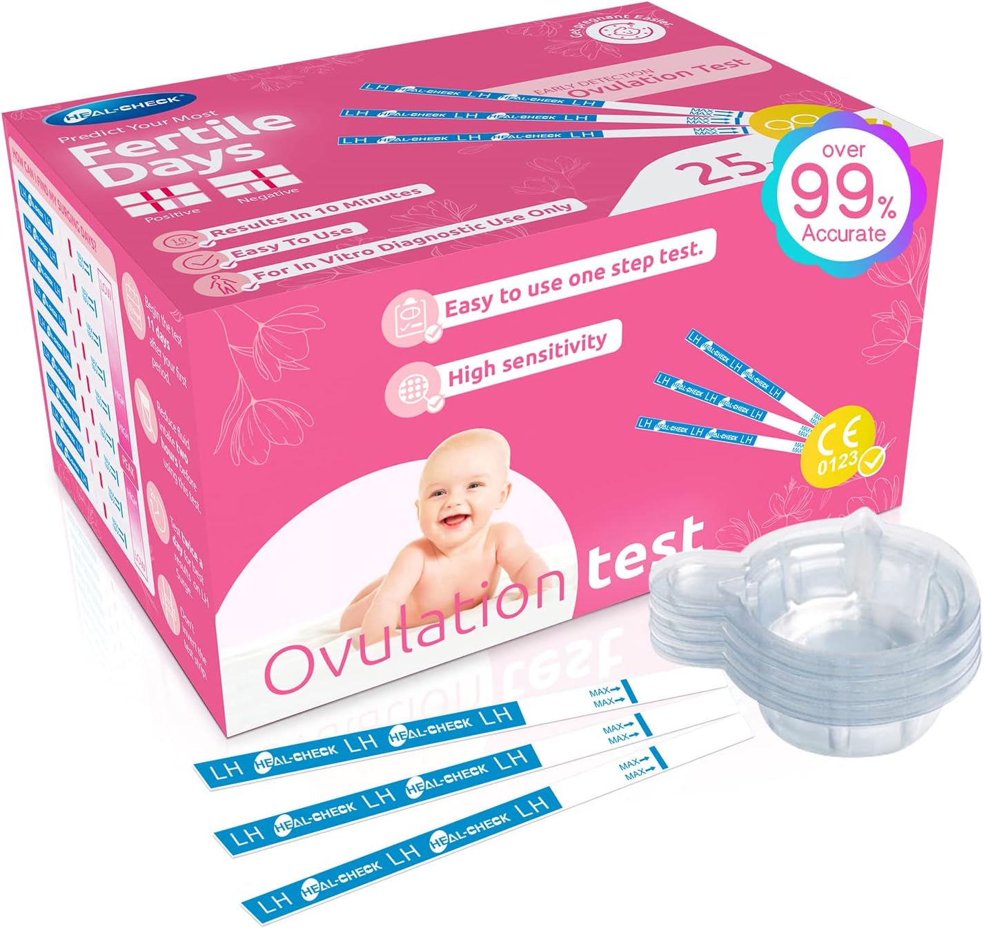 Ovulation Strips, HEAL-CHECK Ovulation Tests for Women, Bulk Ovulation Kits with Urine Cup, Extra-Wide 5mm LH Test Strips, Accurate Individually Wrapped Fertility Tests at Home, Pruebas de Ovulacion